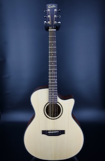 solid mahogany top, mahogany b&s, cutaway with EQ, amara ebony fb