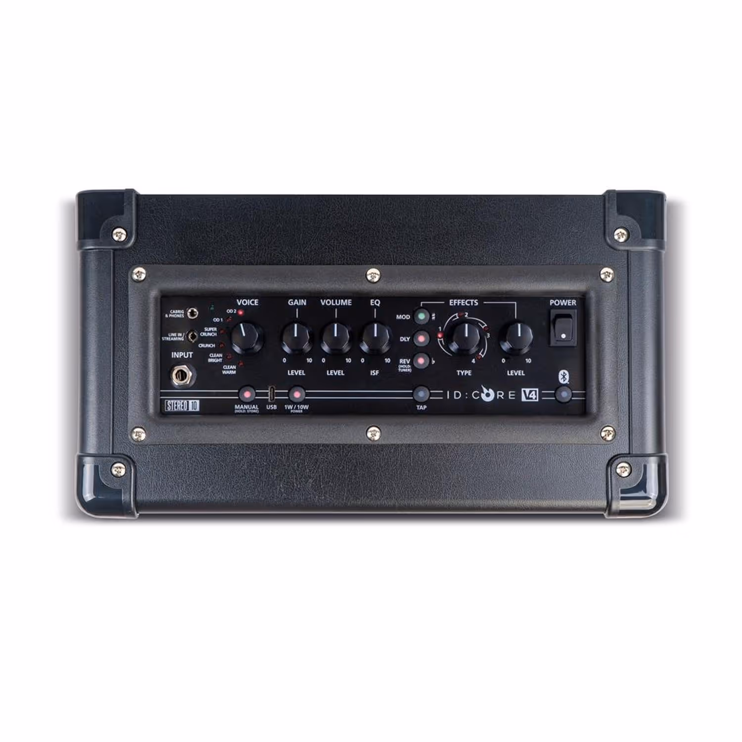 Beyond its impressive sound capabilities, the ID Core 10 V4 offers advanced features such as a user-configurable CabRig™ Lite cabinet simulator, allowing players to fine-tune their sound with various cabinet and microphone settings directly from the amplifier. Additionally, the amp's programmability and studio-quality effects, ranging from pristine clean to high gain tones, offer endless possibilities for crafting your unique sound. The ID Core 10 V4 is also designed for portability, supporting up to 9 hours of play with the optional PB-1 Power Bank, making it ideal for musicians on the move.
