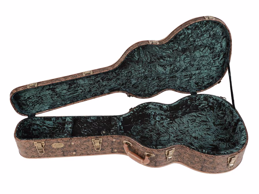 This Boston Musical Products case (wood) is ideal for transportation and protection of your auditorium model acoustic guitar. The combination of robust number locks, crushed velvet inner lining, reinforced outer edges, a sleek tolex finish (with carved fractals) and a very sharp price, makes the price-quality ratio of this case very beneficial.