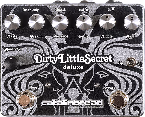 Adding the Formula 5F6 will solve all of these problems and will become the foundation of your pedalboard — the stompbox that will enhance the response of all your other effects. The Formula 5F6 lends itself to almost any musical style, from the classic Strat/Bassman blues tones of Buddy Guy and Otis Rush to artists like Stevie Ray Vaughan, Robbie Robertson and Robben Ford, all the way to heavier styles by stacking boost, overdrive, or fuzz pedals into it. Don't worry, the Catalinbread Formula 5F6 won't just make you play old music! It will take you where your imagination takes you.