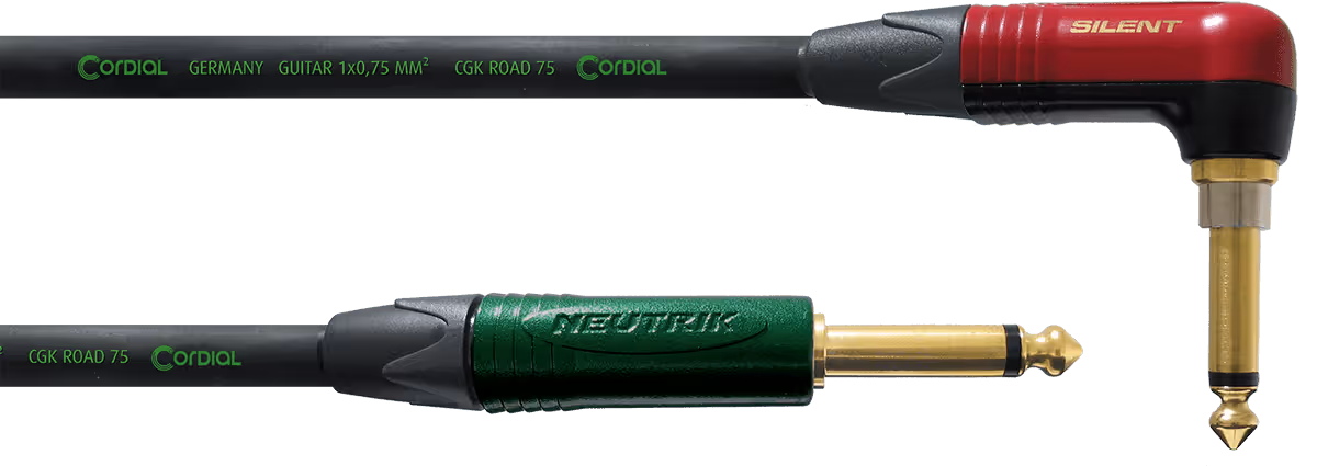High-quality Instrument Cable with Silent Plug 6.3 mm jack mono SILENT 90° angled to 6.3 mm jack mono straight
