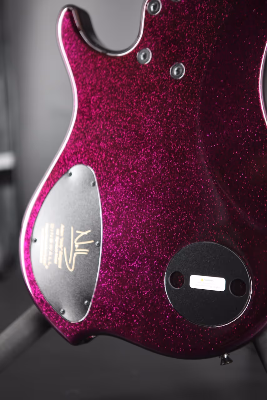 The idea of this one came up in a restaurant after a Dingwall-Event in Holland for Benelux dealers. With none other than Sheldon Dingwall himself. The idea surfaced that instantly felt right: a limited-edition Dingwall NG-3 in Purple Sparkle Flake.