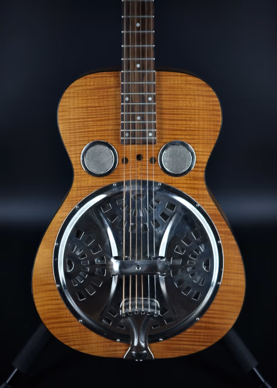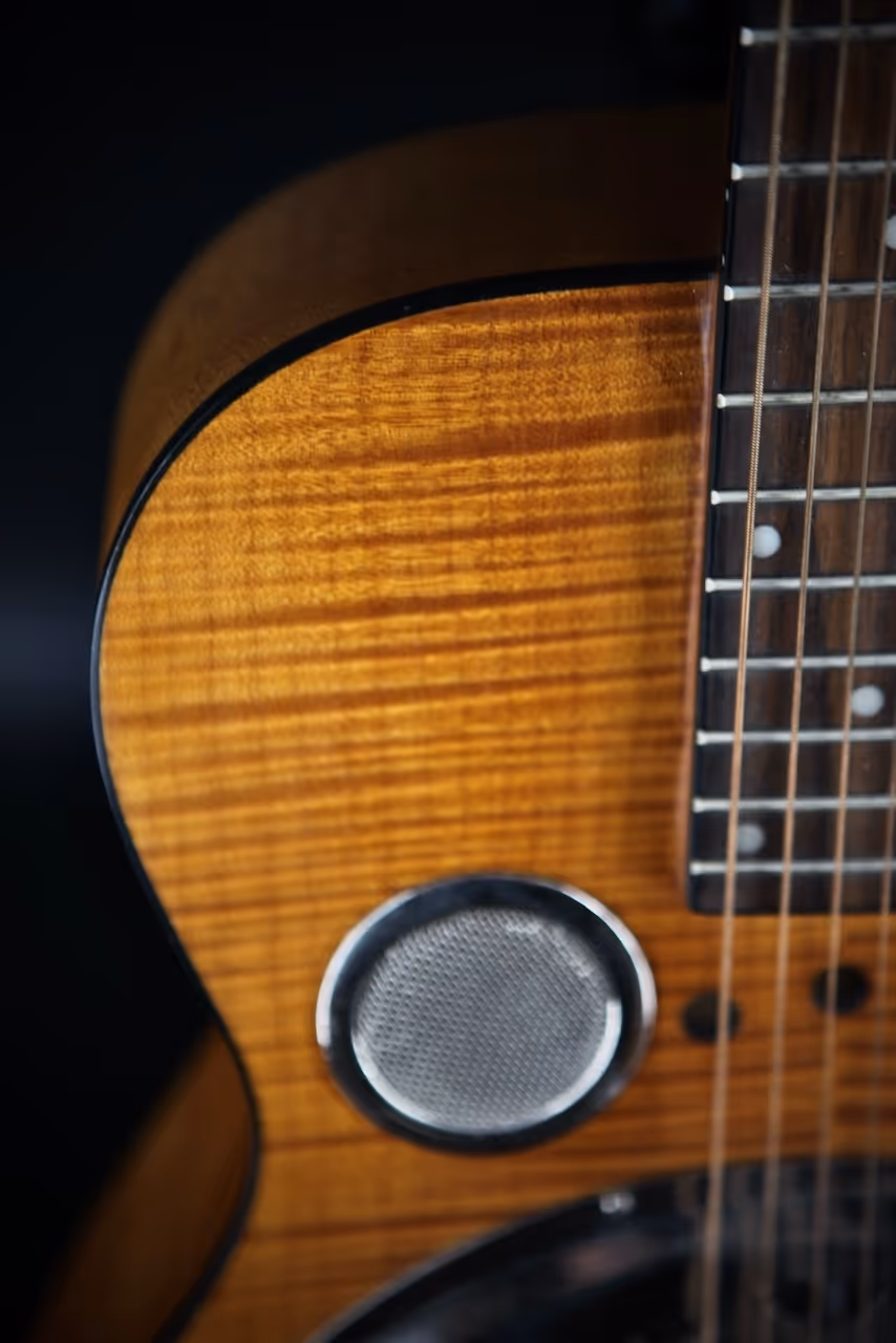 The resonator guitar became one of the most popular instruments for bluegrass and up-and-coming blues in the 1920s due to its high volume and distinctive sound. The Epiphone Dobro Hound Dop Deluxe Round Neck follows in the footsteps of its ancestors and impresses with its full, powerful sound, which gives every lick enormous carrying power. The specially developed nickel-plated resonator and the sound hole cover are responsible for this. The integrated Fishman pickup system, which transmits the sound of the guitar particularly naturally and with reliable dynamics to the PA system or recording equipment, makes the Dobro Hound Dog ideal for use on stage and in the studio.