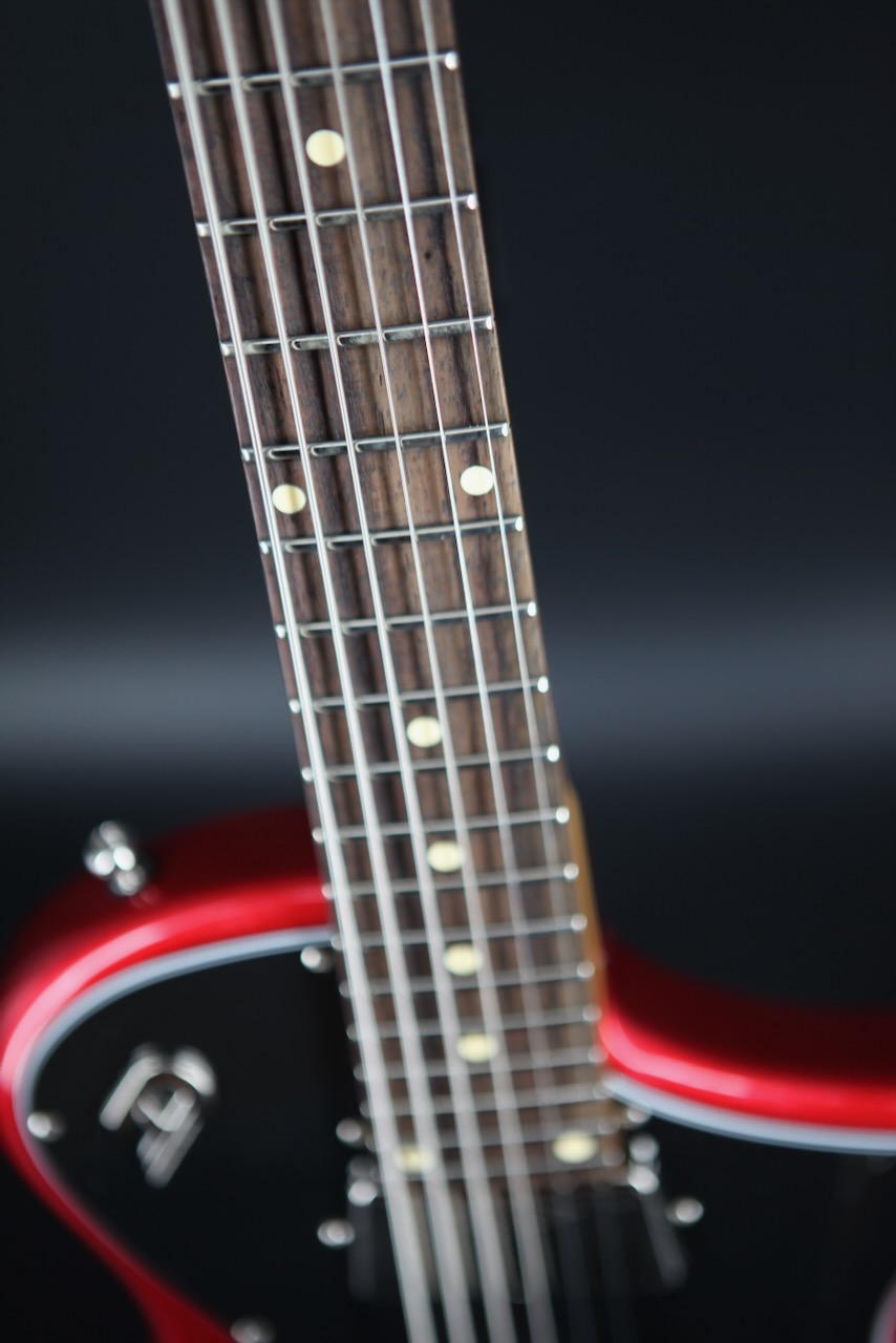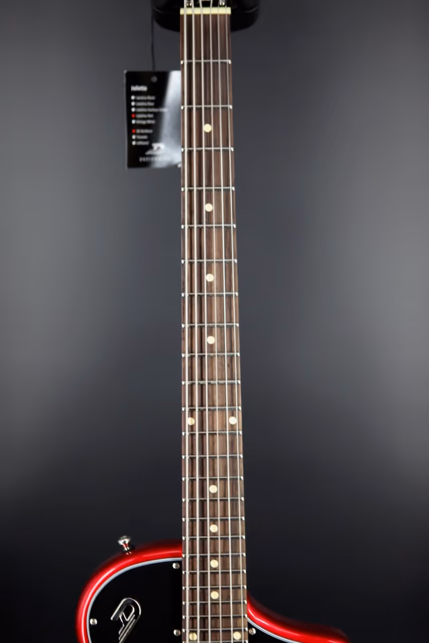 The distinctive verticality of Duesenberg’s creative output — from basic ideation to fully assembled instruments — uniquely enables them to bolster the sonic parity of every part of the Julietta with one another, and they’ve spared no effort in supplying a solid foundation. Its alder body anchors its tonal profile, resulting in clear, full-bodied sound across the spectrum that balances snappy attacks and enduring sustain with excellent articulation and a slightly scooped EQ curve that emphasizes upper mids. A maple neck imbues your sound with warmth and brightness that complement alder’s natural presence. Meanwhile, the Indian rosewood fingerboard imparts a shimmering, glassy veneer to your output, facilitating flexible expression and crystalline articulation that tames any harsh, hissing tones but won’t compromise its full-spectrum clarity.