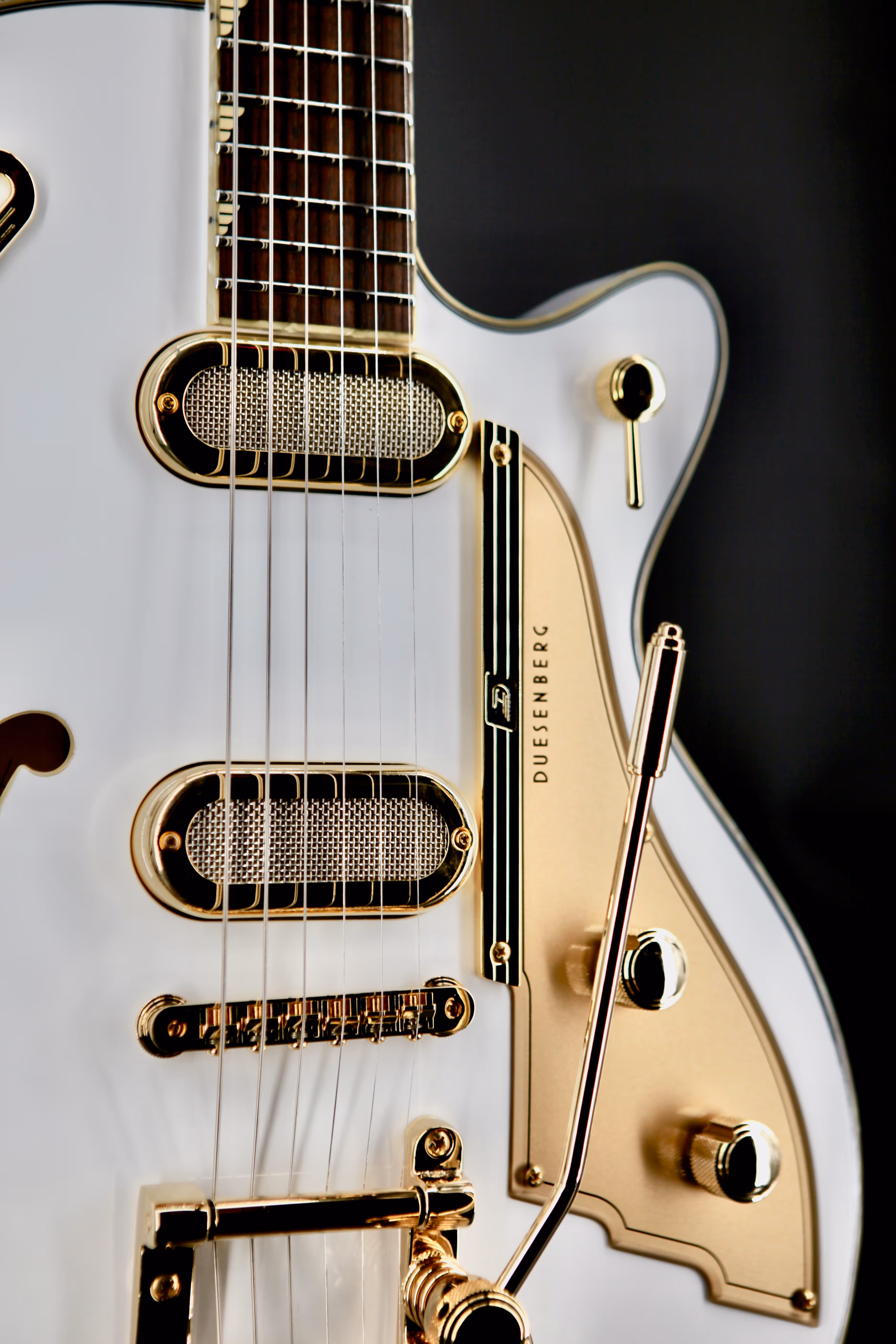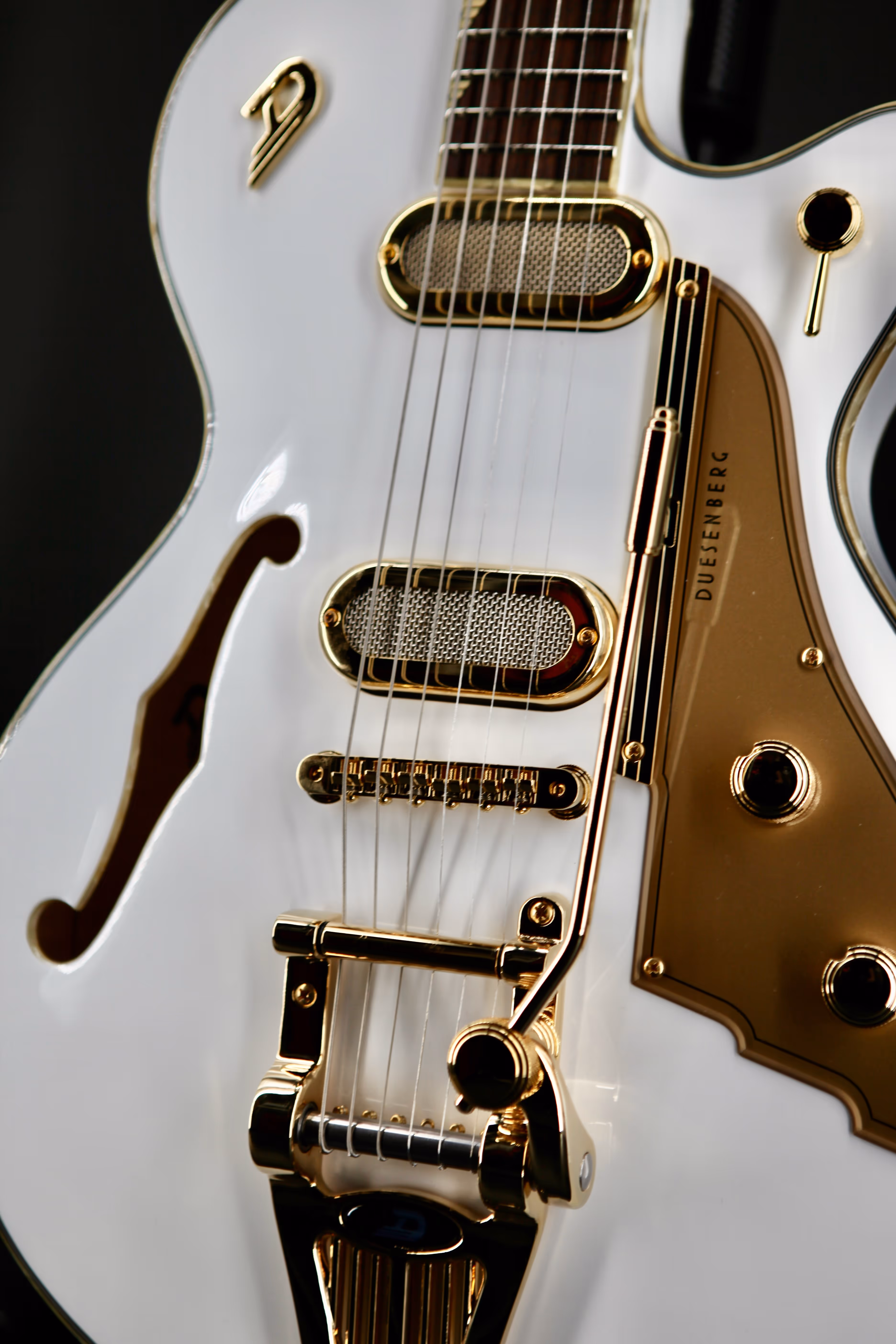 All instruments are fitted with proprietary hardware, which you will only find on a Duesenberg. It's designed with attention to even the smallest details to create truly unique instruments from tuner buttons to jack plates. All fretboards are carefully plek'd and finished by hand for optimum playability and the smooth feel they are famous for. The Phonic additionally sports elegant Duesenberg Wing inlays on the fretboard and a luxurious pearl binding all around the guitar.