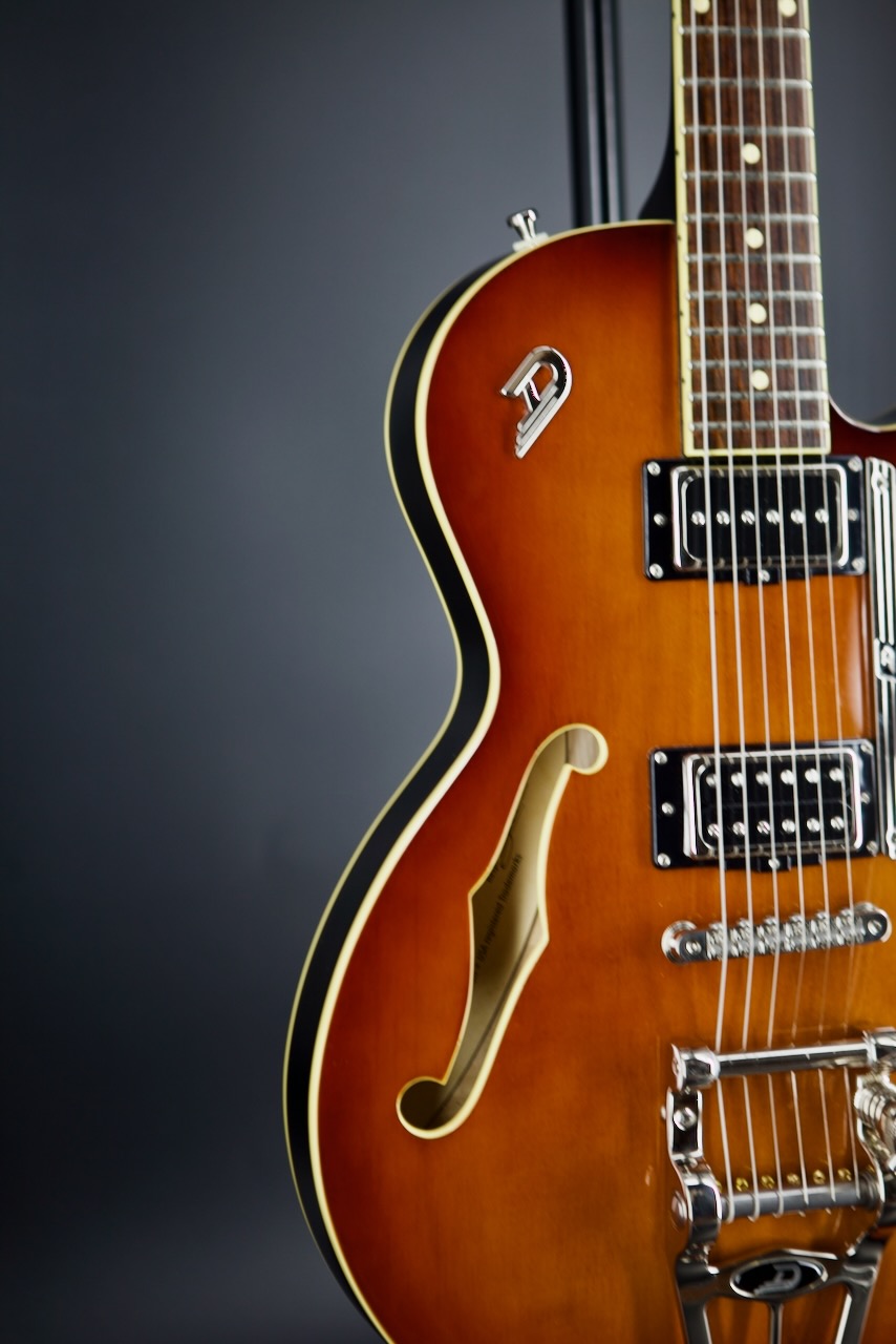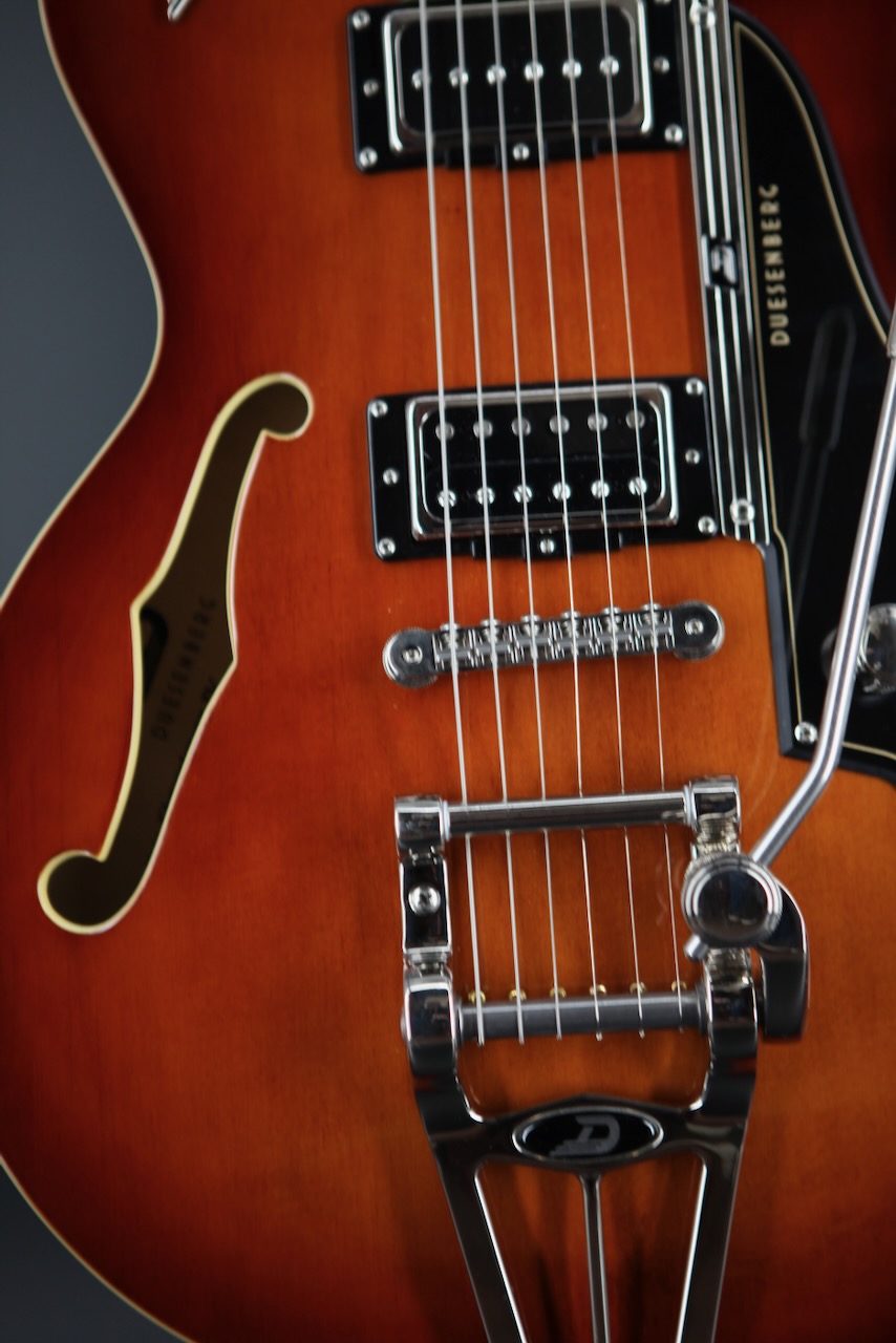 The Duesenberg Starplayer TV is a prestigious masterpiece, holding vintage qualities that have made it renowned amongst music industry professionals and legends. It has no limits. Whether you're after smooth jazz tones or that crunchy rock oomph, the brilliant P90/Humbucker duo will deliver excellence with every note. And to add another magical dimension to your sound, the Diamond Deluxe Tremola allows you to experience shimmering vibrato effects.