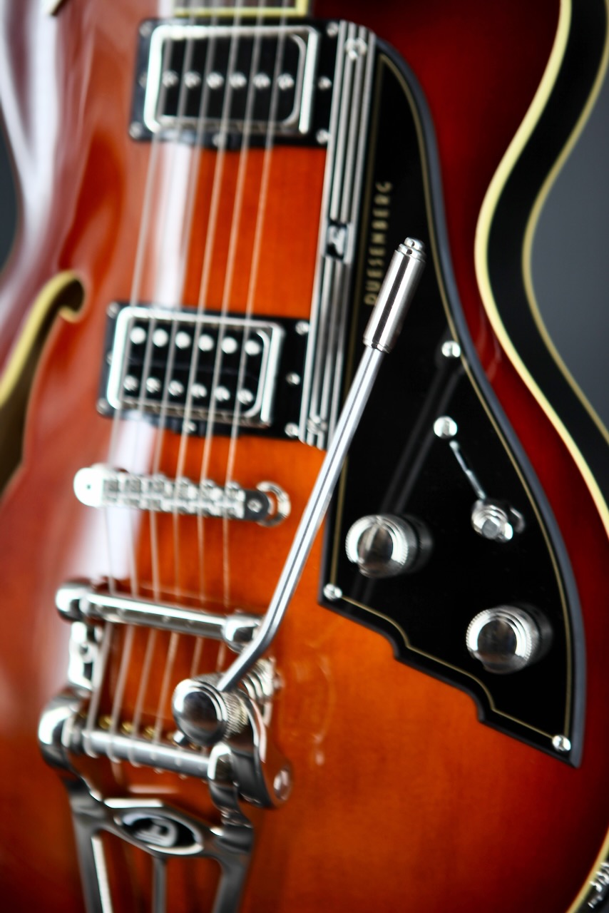 Send your tone into warbling, dazzling madness. The Duesenberg Diamond Deluxe Tremola lets you go from gentle chordal shimmers to full on exhilarating pitch bends without losing any reliable tuning stability. It offers exceptionally smooth action and easy string changes whilst also being comfortably lightweight. Even better, you can count on a lifetime of durability and high responsiveness thanks to its heavy duty construction and nylon bearings - there's nothing holding you back. And tailor it to suit you by adjusting the vibrato arm to the right angle and length, it can even be turned 360°. It's so comfortable and easy to use, you'll hardly know it's there, and yet its dreamy effects are enormous.