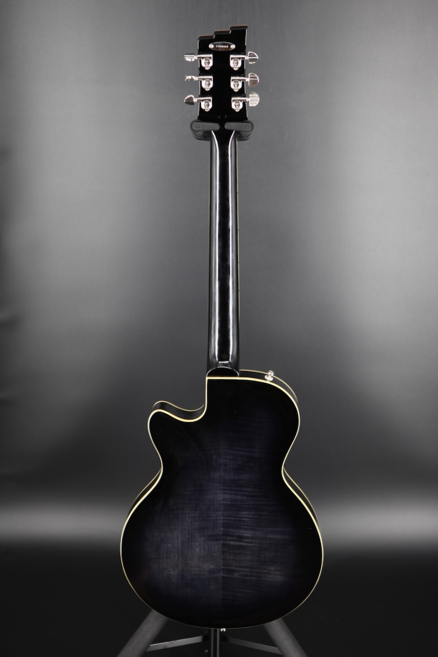 Flamed maple back and sides are the perfect accompaniment to spruce as they allow for even more tremendous volume. But that doesn't mean you have to sacrifice definition; maple has the ability to give you all those exhilarating dynamics without any of the dreaded feedback, something which is typically associated with semi-hollow guitars. Only glistening, immaculate notes will be heard. The set neck construction then grants you smooth sustain for a rich, full sound. Maple is excellently robust and durable too, making it perfect for both the body and neck. You can play as aggressively as you like - such a sturdy body and neck can take it. And an elegant black finish ensures the flamed maple looks simply stunning.