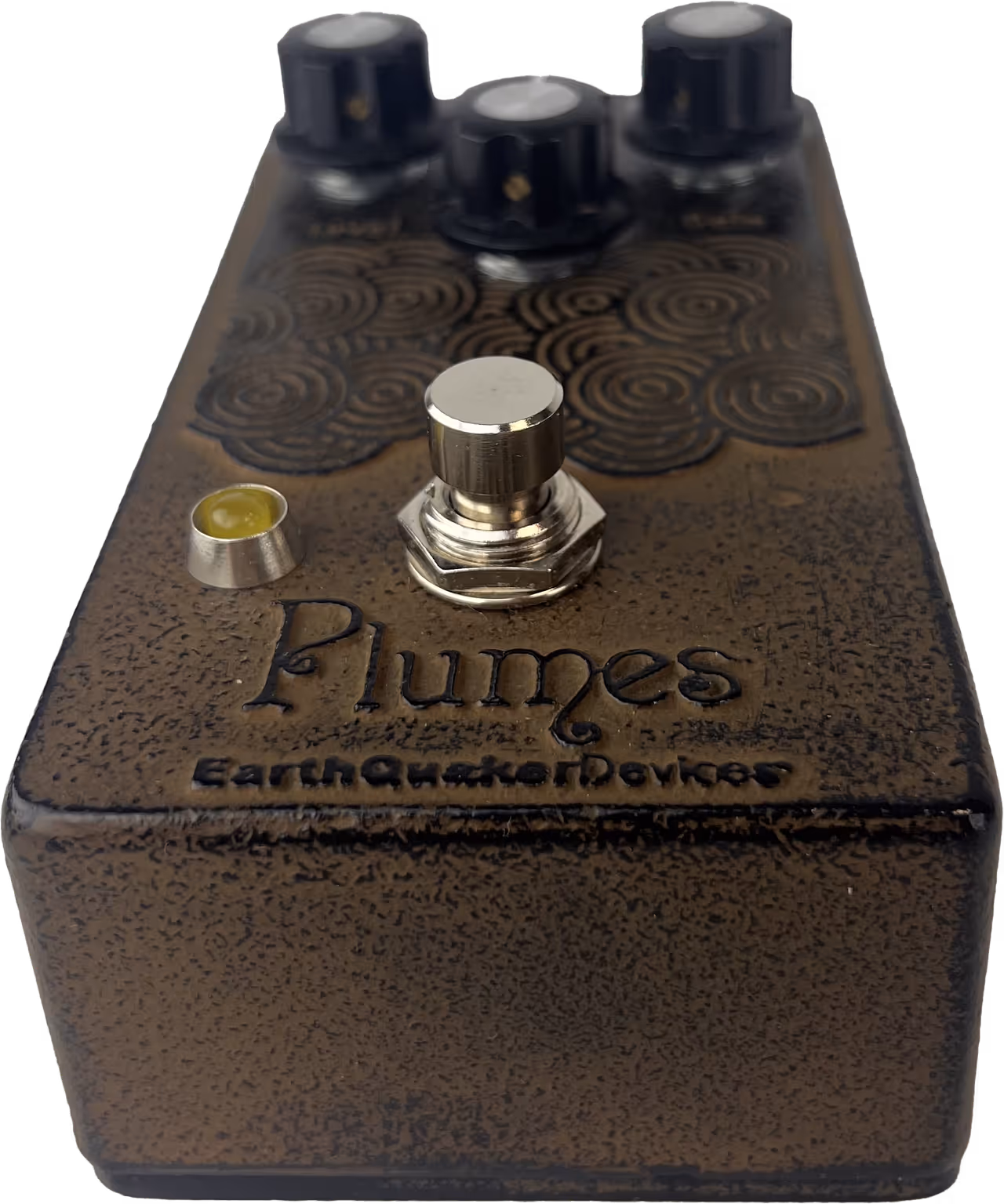 Earthquaker Devices Plumes KGR Cast Iron Limited Edition is a unique, all-analog approach to a classic tube-like overdrive circuit offering 3 different clipping voices, loads of headroom and almost three-dimensional clarity that will push your amp over the edge. The reimagined tone control is finely tuned to sculpt low end, clear top end, and focus midrange with blooming sustain.