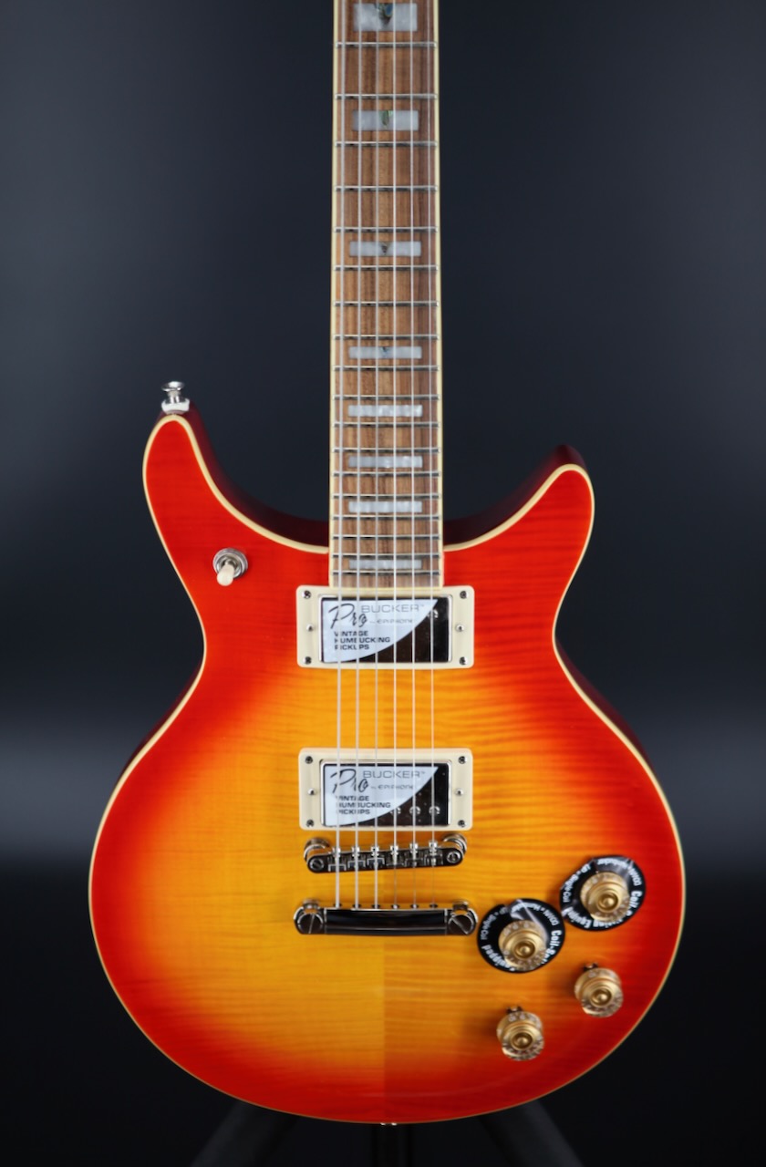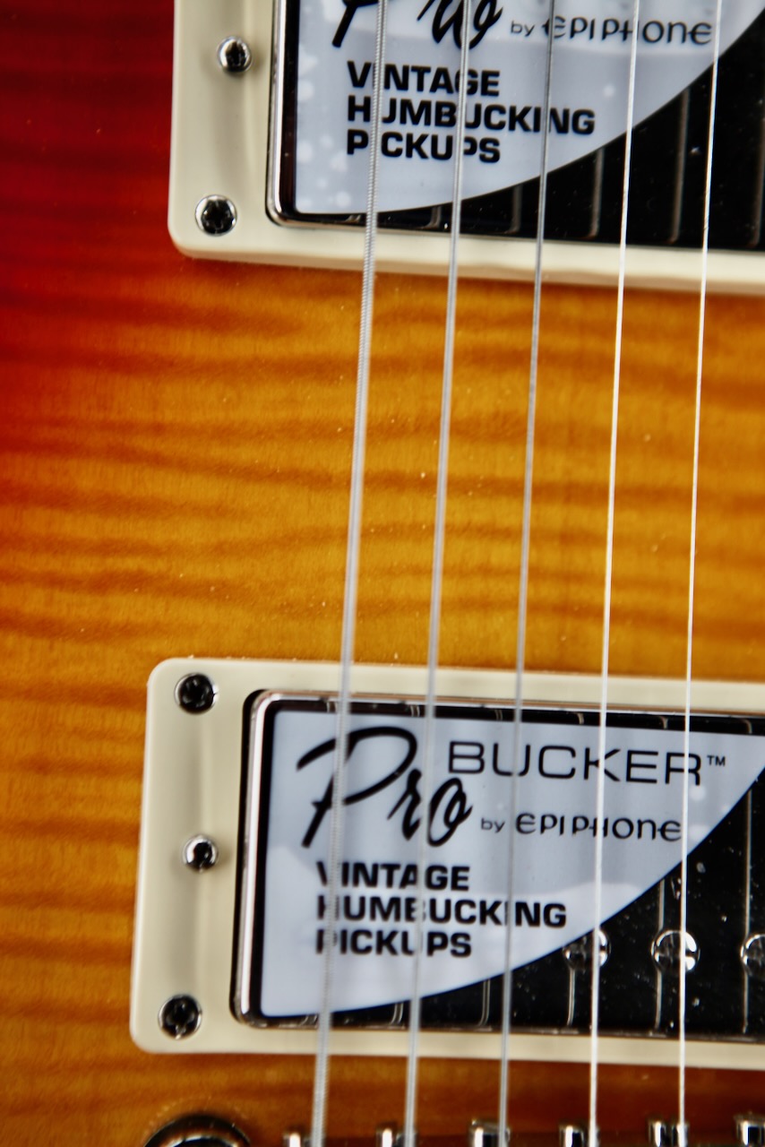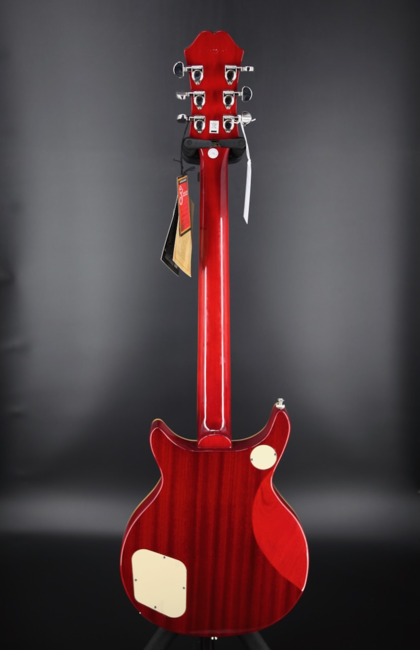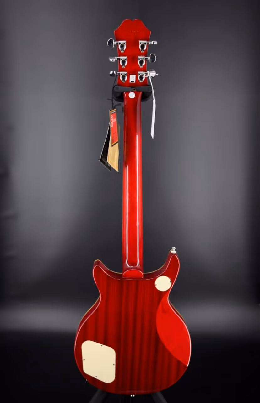 Looking for a performance-packed double-cutaway guitar? Then pick up an Epiphone DC Pro — you won’t be disappointed. Its resonant mahogany body delivers richness and warmth that’s accented by the snap and sustain of an eye-catching AAA flamed maple top. Experience incredible PAF-like tone thanks to dual ProBucker pickups, while coil tapping and phase invert unlock an entire universe of tones. You’ll appreciate the playability of the DC Pro’s custom C-shaped mahogany neck and easy-playing pau ferro all-access fingerboard. The DC Pro features attractive cream binding, block-and-triangle fingerboard inlays, a 1940s-era vine headstock inlay, and a pearloid Epiphone logo.