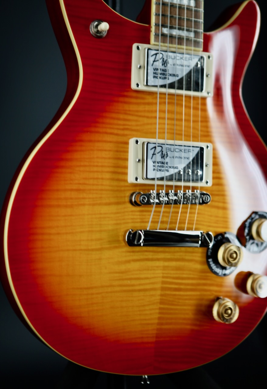 When Epiphone released the Del Rey in 1995, with its double-cutaway design and easy upper fret access, it was a huge hit — in fact, it’s one of Epiphone’s most-loved contemporary designs. The DC Pro takes that classic design to new heights with a resonant mahogany body and an eye-catching AAA flamed maple top that deliver richness and warmth with plenty of snap and sustain. Cream binding adorns the DC ro’s headstock, body, and fingerboard, ensuring that all eyes will be on you every time you hit the stage.