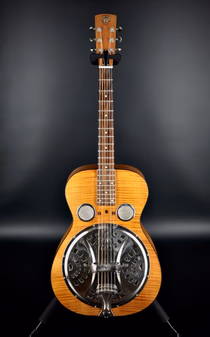 The J-200 gives a heavy nod towards the Gibson SJ-200 first introduced in 1937. The jumbo acoustic made its name in folk, rock and country music among big names like Elvis, Jimmy Page, Bob Dylan and George Harrison. Like the OG, the J-200 is ideal for big strumming and a big band setting.