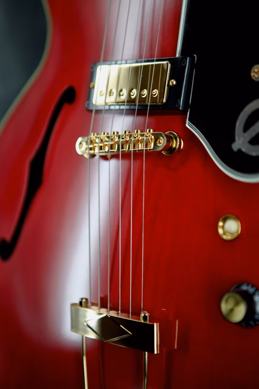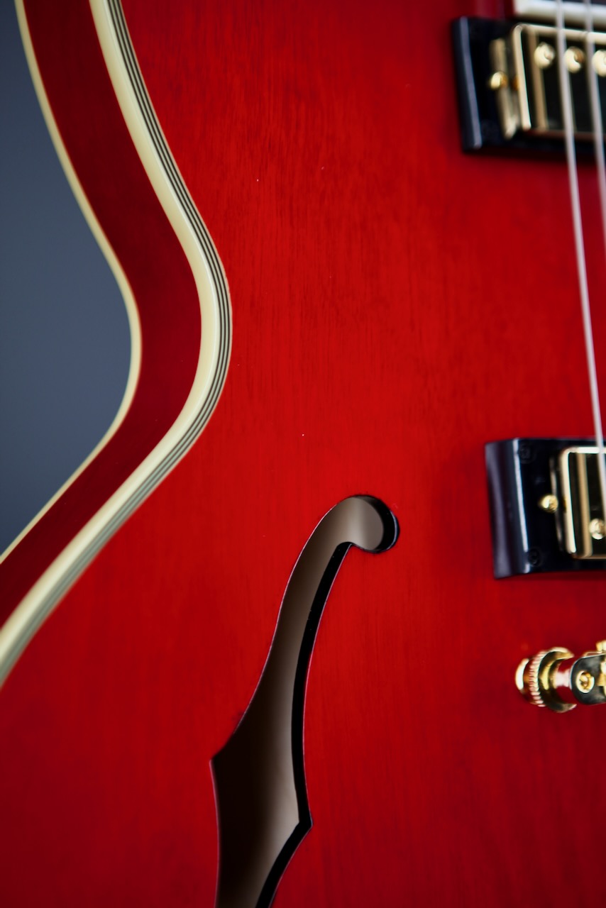 Originally gifted to Gem from Noel Gallagher, this cherished vintage semi-hollow quickly became his go-to. The Epiphone Masterbilt Gem Archer Sheraton pays tribute to this iconic guitar with features way above its price point. Its duo of USA-made Gibson Mini Humbucker pickups provide the genuine rock n roll tone and perfectly accentuates the unique tone and resonant sustain of an Epiphone semi-hollow electric guitar. Its CTS pots in combination with Mallory tone caps help further provide authentic vintage-voiced tone as well as road and stage-ready performance. Built to the high standard of the Epiphone ‘Inspired by Custom’ range, this signature electric is built to perform. It's comfortable ‘60s C-shaped neck feels fluid and comfortable up and down the fingerboard, and its gold ABR-1 bridge with Diamon Trapeze tailpiece and Grover tuners help provide rock-solid stability and eye-catching looks.