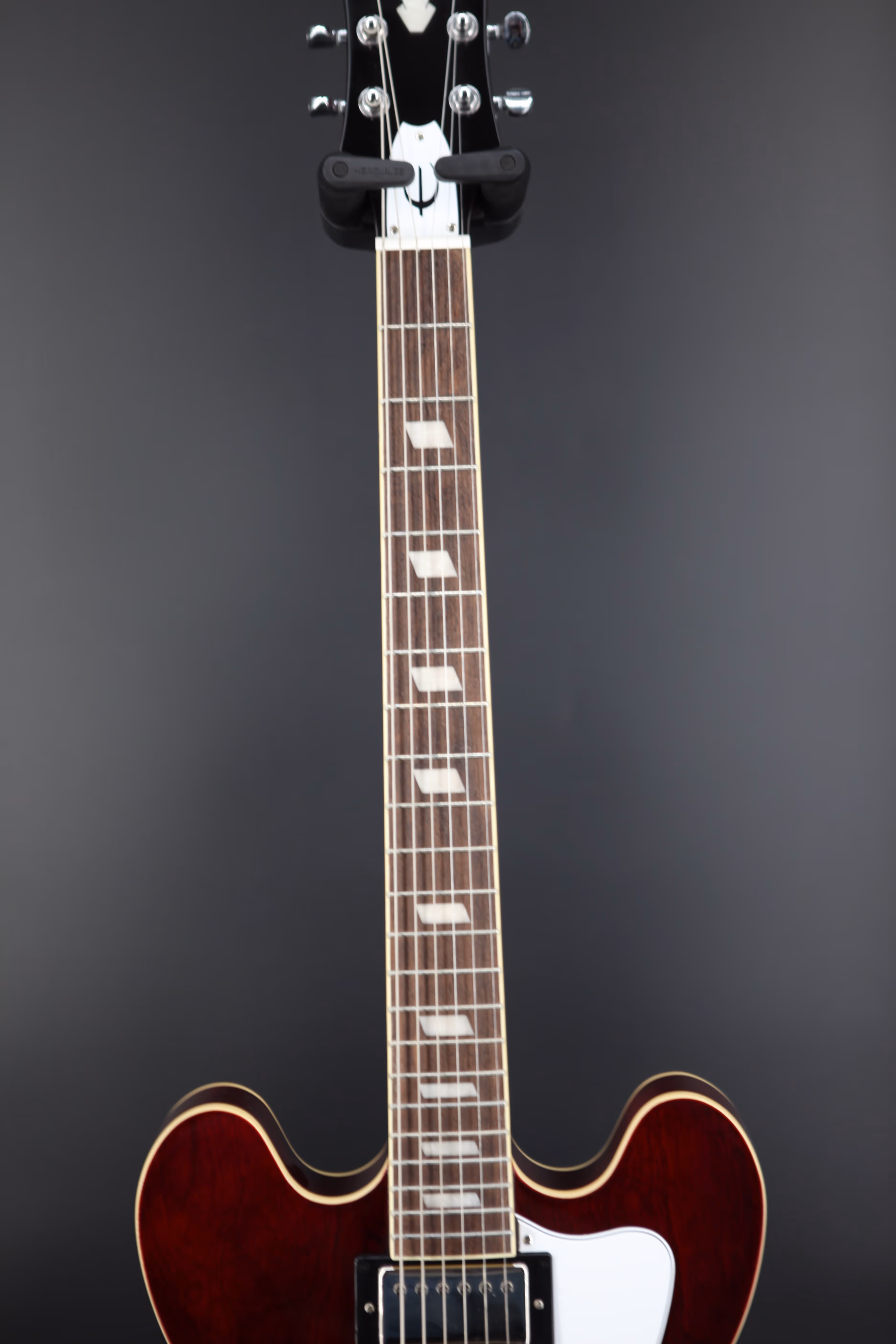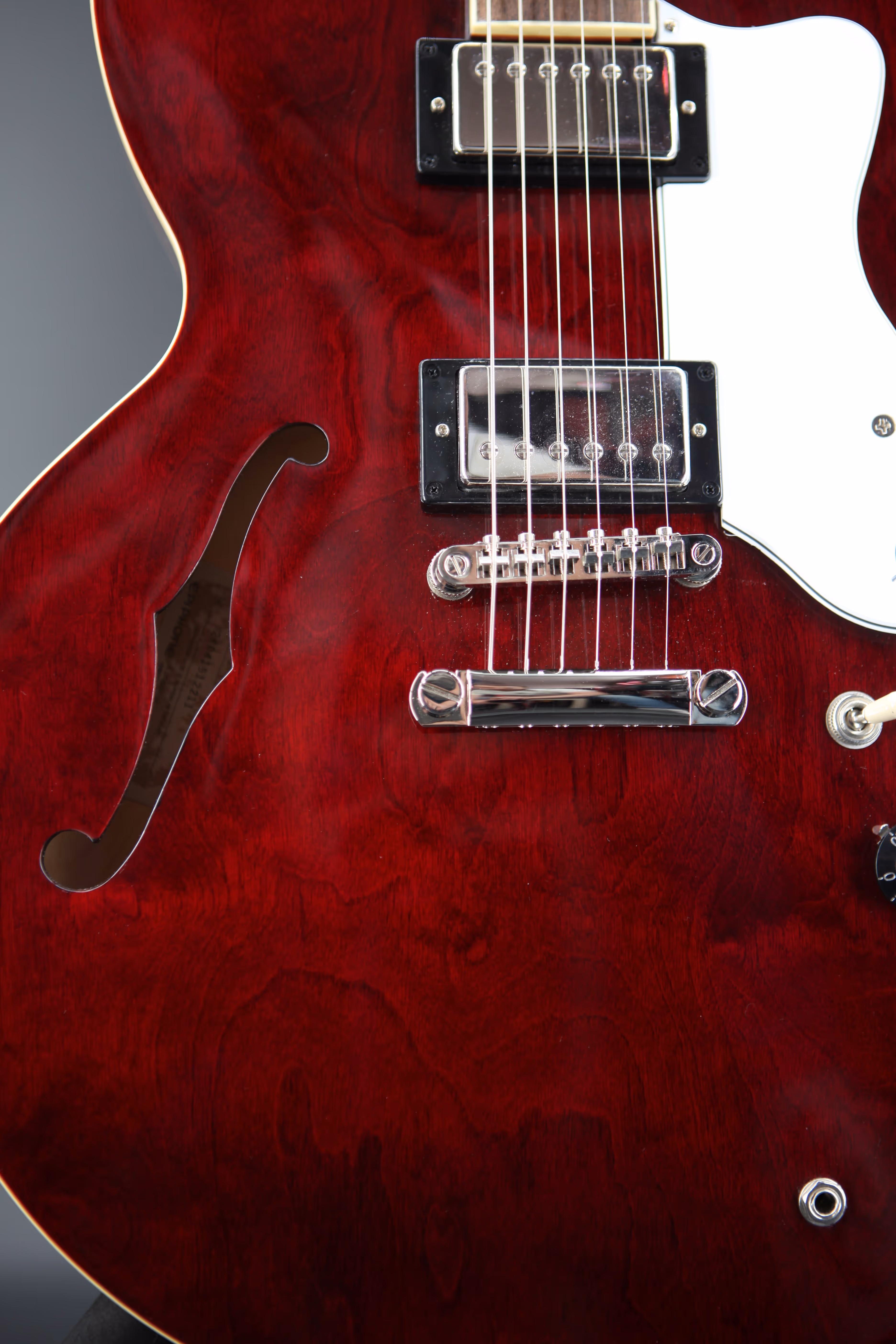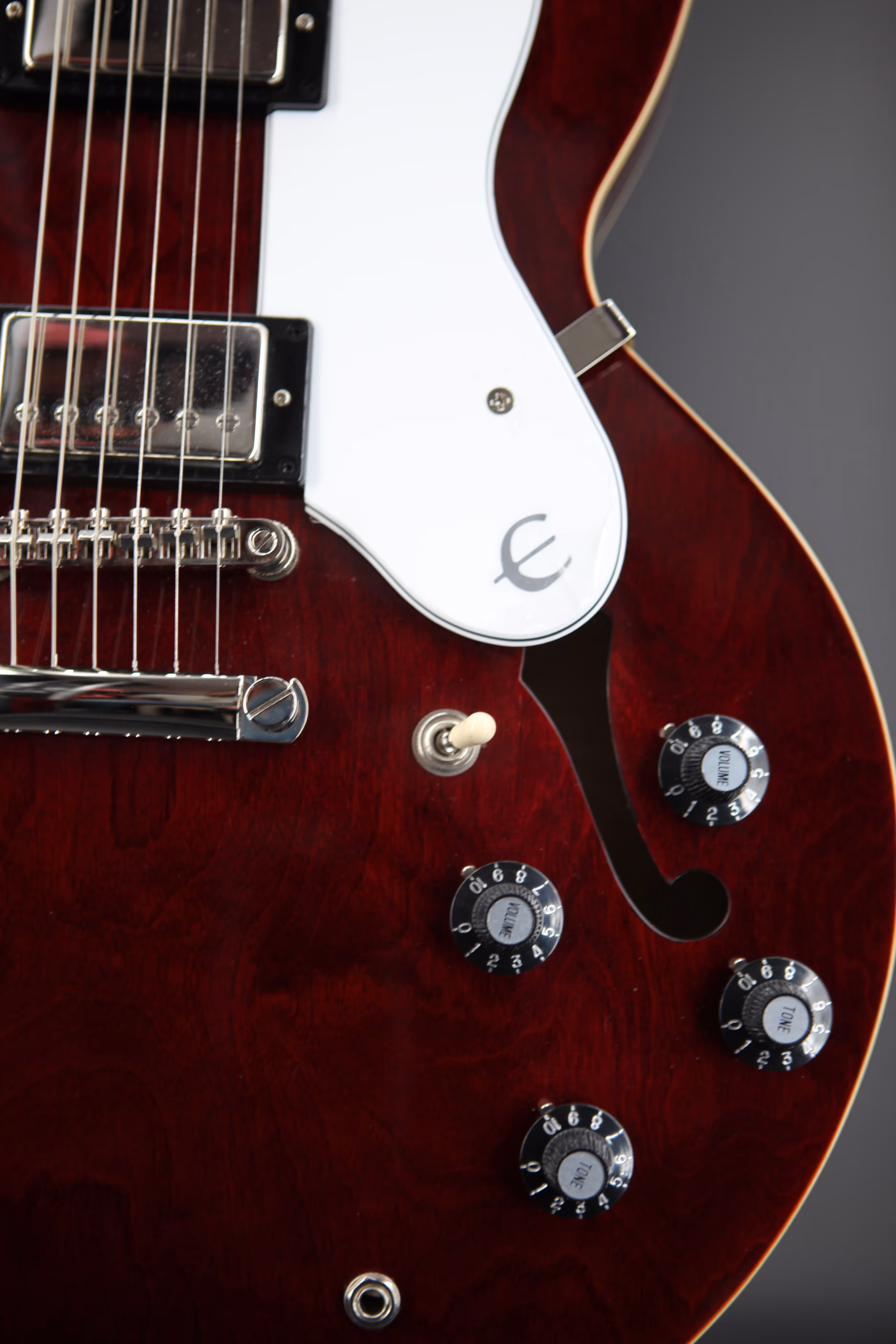 Noel Gallagher is one of the UK's most successful songwriters and his work with Oasis in the '90s defined a generation. With countless number one singles and multi-platinum selling albums under his belt, Noel continues to fill arenas worldwide, nearly thirty years on from the release of Oasis' landmark debut album "Definitely Maybe". The Epiphone Noel Gallagher Riviera honours the former Oasis guitarist, paying tribute to his undeniable impact on British music. Featuring a semi hollow 5-ply layered Maple body, the Riviera sports a stunning dark wine red finish, closely matched to the original models from the era. A SlimTaper C shape Maple neck includes a period correct volute, designed to improve stability on the neck and headstock. Other historically accurate appointments include "E" logos on the truss rod cover and pickguard and a brown sound hole label, giving the guitar a cool vintage vibe. An Indian Laurel fingerboard offers a smooth playability whilst maintaining a vintage look and is adorned with Pearloid Trapezoid inlays. At the heart of the Riviera is a pair of Epiphone Classic PRO pickups, offering up a host of vintage humbucking tones. With two volume and two tone controls, and a 3-way selector switch, there are plenty of tone shaping options on hand. These dynamic pickups pair beautifully with the semi hollow body, producing a resonant tone that responds to your playing style. The Riviera is a must-have for avid fans of Noel Gallagher and Oasis and comes in an Epiphone hardshell case, offering premium protection and convenient storage.