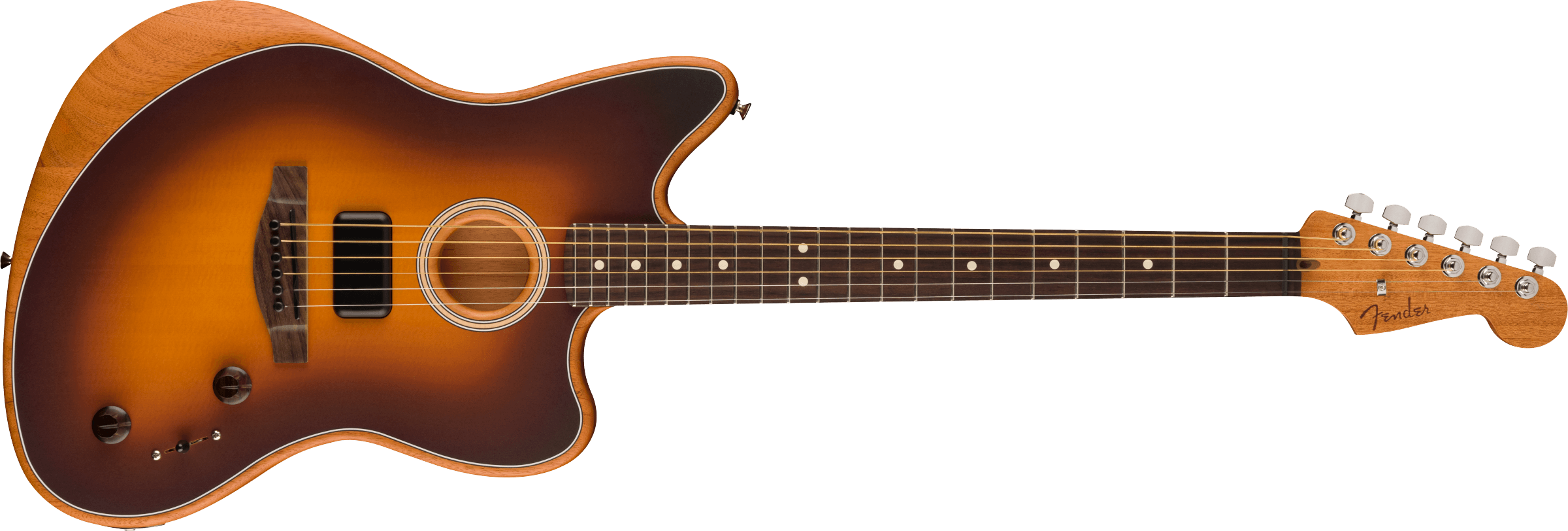 Fender continues to explore the sonic possibilities of an acoustic-electric hybrid guitar with the Acoustasonic Player Jazzmaster! Purposefully streamlined and equally versatile, this guitar intuitively transitions from acoustic to electric voices with the 3-way switch, or from clean to driven with a turn of the 'Blend' knob. The Acoustasonic Player Jazzmaster delivers unlimited inspiration, flexibility and accessibility for the next generation of modern musicians.