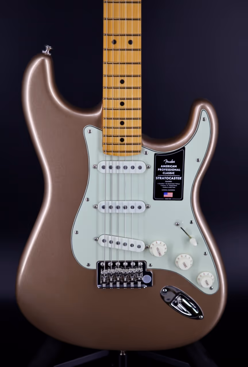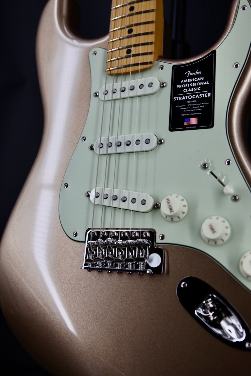 NEW FOR 2025 ! he perfect blend of vintage charm and modern performance – the American Professional Classic Stratocaster®. Under the hood, vintage-inspired Coastline™ '57 Stratocaster® pickups deliver depth, punch and sparkle while the sleek Modern "C" neck provides exceptional comfort and playability. Fender Staggered ClassicGear™ tuners provide classic looks and precise tuning stability. Boasting custom-faded vintage and signature Fender® finishes, this professional-grade instrument looks as good as it sounds. From studio to stage, The American Professional Classic Stratocaster® – All the soul of a golden-era Fender®, evolved for today's player.