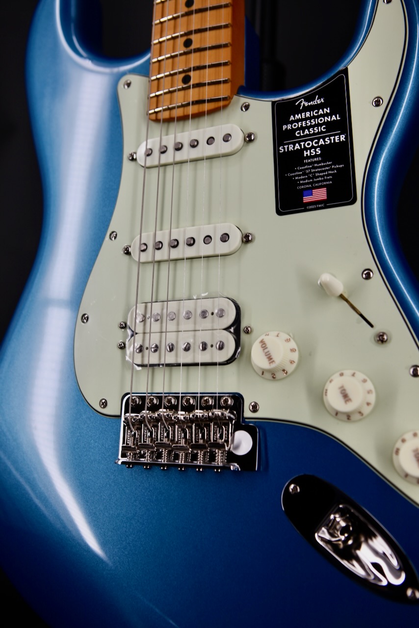 NEW FOR 2025 ! The perfect blend of vintage charm and modern performance – the American Professional Classic Stratocaster HSS®. Under the hood, vintage-inspired Coastline™ '57 Stratocaster® pickups and Coastline™ humbucker deliver depth, punch and sparkle while the sleek Modern "C" neck provides exceptional comfort and playability. Fender Staggered ClassicGear™ tuners provide classic looks and precise tuning stability. Boasting custom-faded vintage and signature Fender® finishes, this professional-grade instrument looks as good as it sounds. From studio to stage, The American Professional Classic Stratocaster HSS® – All the soul of a golden-era Fender®, evolved for today's player.
