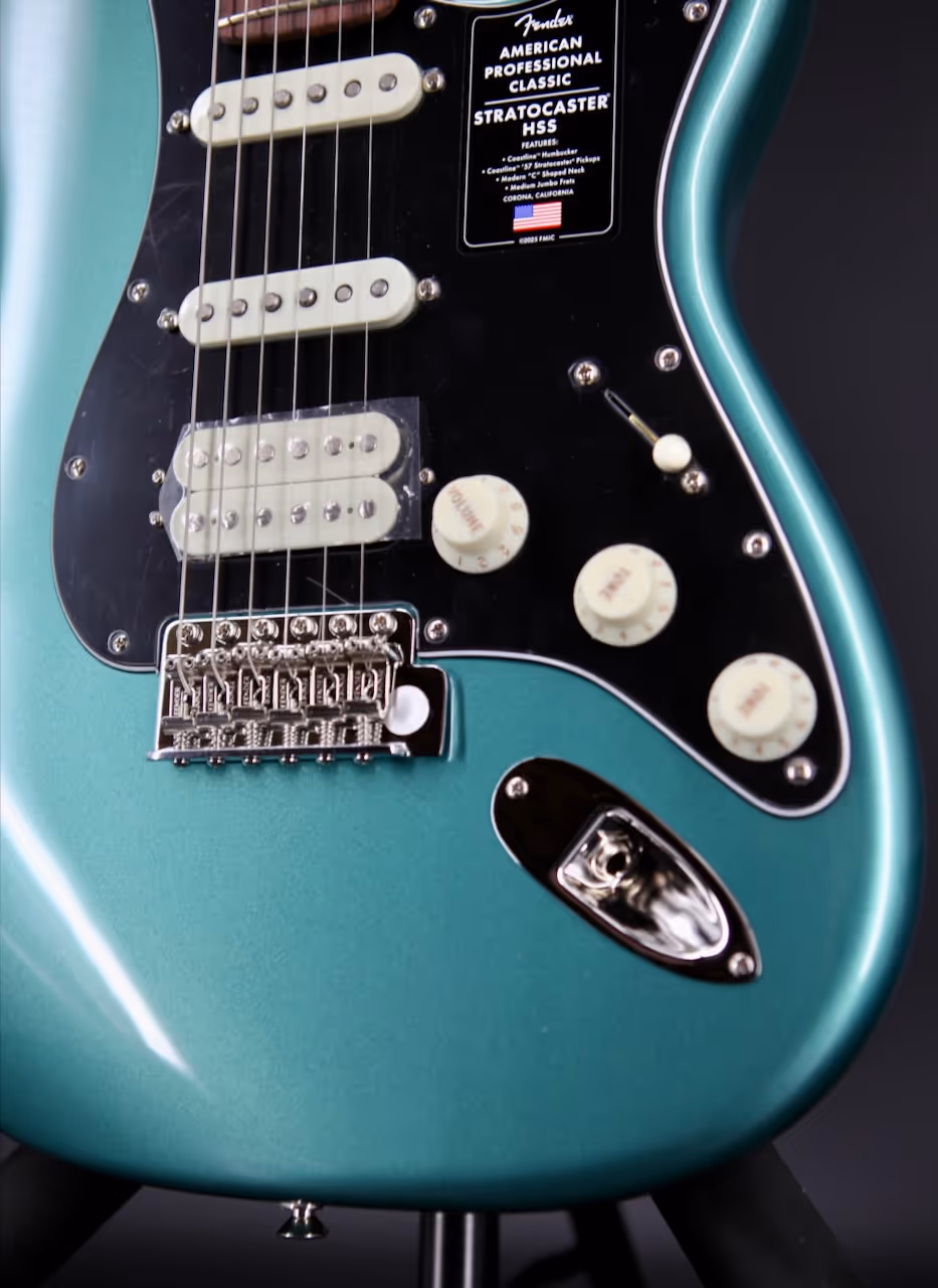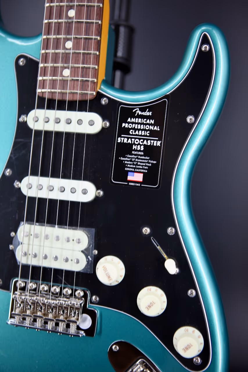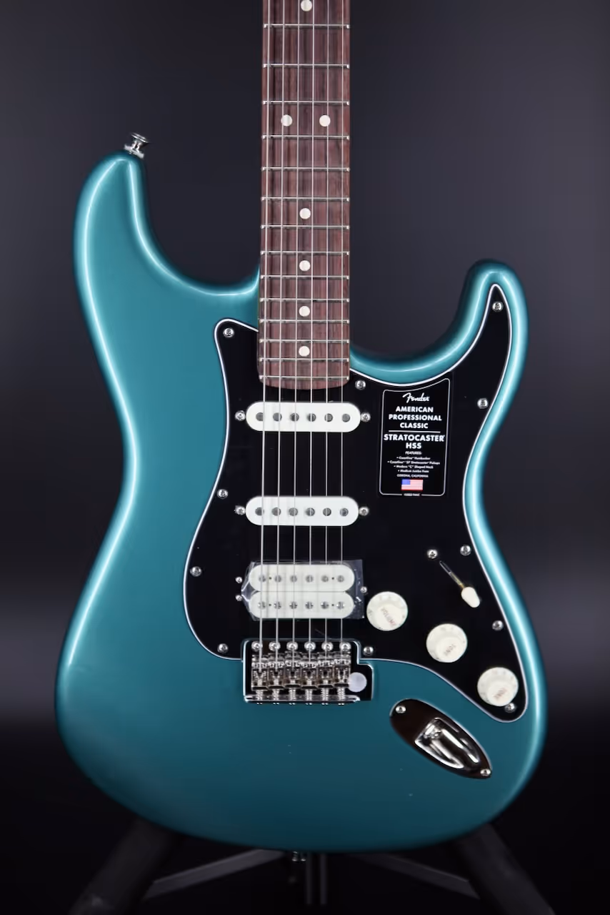 NEW FOR 2025 ! The perfect blend of vintage charm and modern performance – the American Professional Classic Stratocaster HSS®. Under the hood, vintage-inspired Coastline™ '57 Stratocaster® pickups and Coastline™ humbucker deliver depth, punch and sparkle while the sleek Modern "C" neck provides exceptional comfort and playability. Fender Staggered ClassicGear™ tuners provide classic looks and precise tuning stability. Boasting custom-faded vintage and signature Fender® finishes, this professional-grade instrument looks as good as it sounds. From studio to stage, The American Professional Classic Stratocaster HSS® – All the soul of a golden-era Fender®, evolved for today's player.