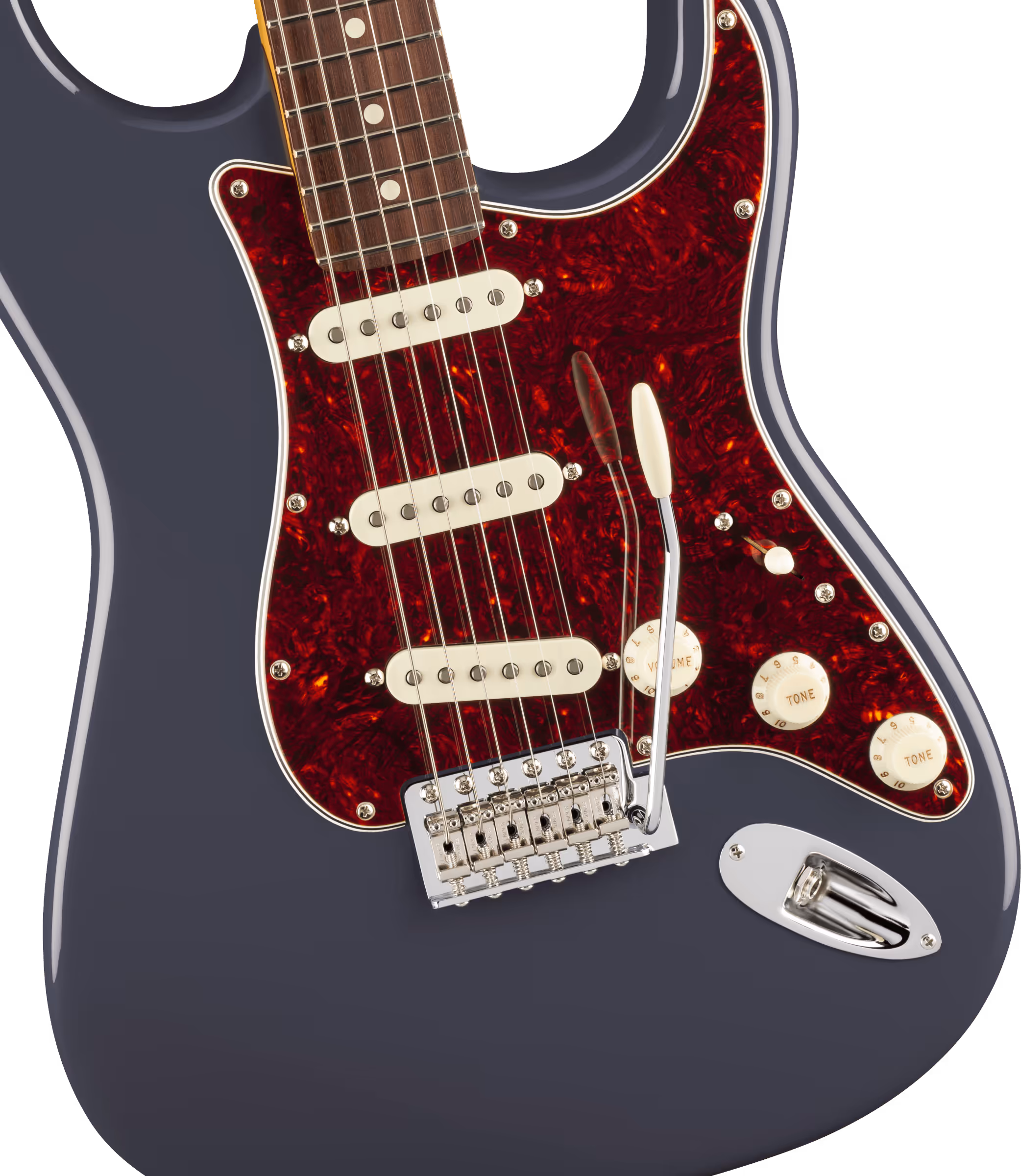 NEW FOR 2025 ! he perfect blend of vintage charm and modern performance – the American Professional Classic Stratocaster®. Under the hood, vintage-inspired Coastline™ '57 Stratocaster® pickups deliver depth, punch and sparkle while the sleek Modern "C" neck provides exceptional comfort and playability. Fender Staggered ClassicGear™ tuners provide classic looks and precise tuning stability. Boasting custom-faded vintage and signature Fender® finishes, this professional-grade instrument looks as good as it sounds. From studio to stage, The American Professional Classic Stratocaster® – All the soul of a golden-era Fender®, evolved for today's player.