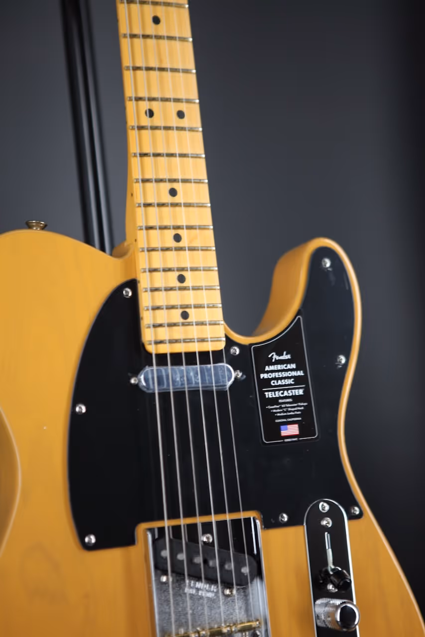 The perfect blend of vintage charm and modern performance – the American Professional Classic Telecaster®. Under the hood, vintage-inspired Coastline™ '63 Telecaster® pickups deliver depth, punch and sparkle while the sleek Modern "C" neck provides exceptional comfort and playability. Fender Staggered ClassicGear™ tuners provide classic looks and precise tuning stability. Boasting custom-faded vintage and signature Fender® finishes, this professional-grade instrument looks as good as it sounds. From studio to stage, The American Professional Classic Telecaster® – All the soul of a golden-era Fender®, evolved for today's player.