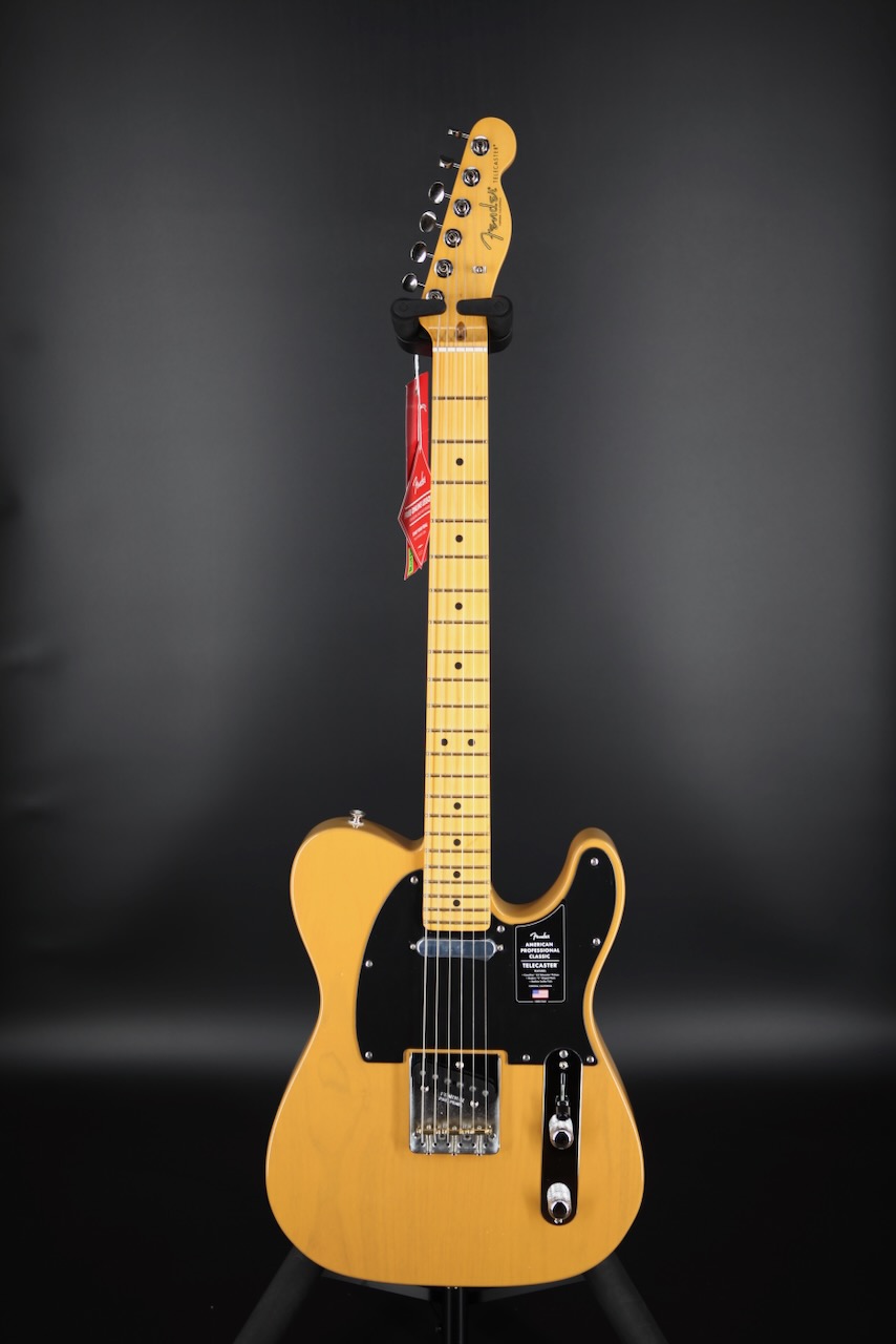 The American Professional II Stratocaster® draws from more than sixty years of innovation, inspiration and evolution to meet the demands of today's working player. Our popular Deep "C" neck now sports smooth rolled fingerboard edges, a "Super-Natural" satin finish and a newly sculpted neck heel for a supremely comfortable feel and easy access to the upper register. New V-Mod II Stratocaster single-coil pickups are more articulate than ever while retaining bell-like chime and warmth. An upgraded 2-point tremolo with a cold-rolled steel block increases sustain, clarity and high-end sparkle. The American Pro II Stratocaster delivers instant familiarity and sonic versatility you'll feel and hear right away, with broad ranging improvements that add up to nothing less than a new standard for professional instruments. FEATURES Three V-Mod II single-coil Stratocaster pickups Upgraded 2-Point Tremolo with Cold-Rolled Steel Block Deep "C"-shaped neck profile with rolled fingerboard edges Bone nut; 22 narrow-tall frets for easy bending Treble bleed circuit maintains highs when reducing volume Includes Deluxe Molded hardshell case