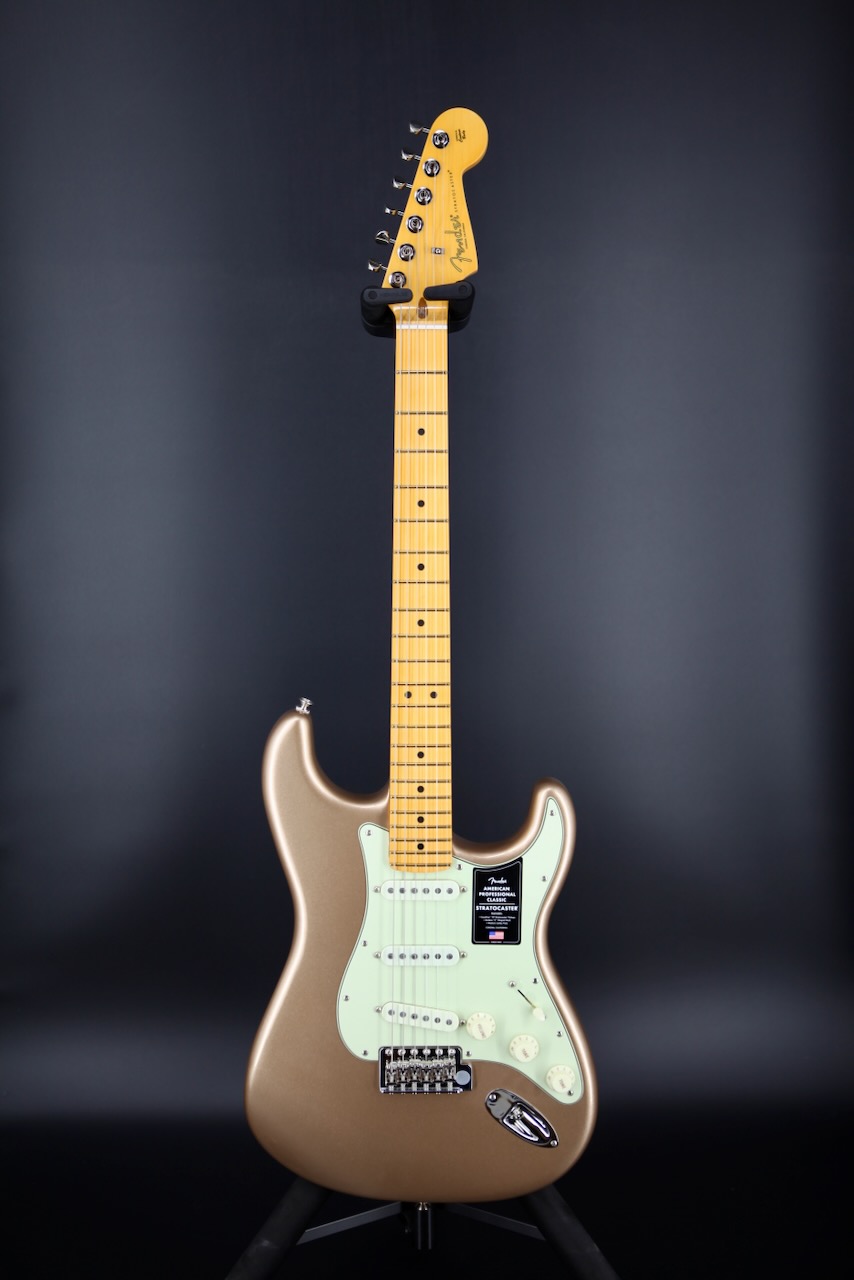 Building on the success of Fender's American Vintage range, the American Vintage II series takes things up a notch, offering incredibly accurate recreations of Fender's most timeless designs. With period accurate bodies, necks and hardware and meticulously voiced, year-specific pickups, the American Vintage II series pays tribute to the revolutionary designs that altered the course of popular music forever. The Fender American Vintage II 1973 Stratocaster perfectly captures the tone and feel of an original CBS-era Strat. With its alluring contours, round-laminated Rosewood fingerboard, crystalline sound and comfortable '73 "C" shape Maple neck, you would be forgiven for thinking you were playing a genuine vintage guitar. Featuring an Ash body with a gloss Polyurethane lacquer finish, the 1973 Stratocaster is the stuff of legends, designed for players with a keen appreciation of vintage instruments! At the heart of the '73 Strat is a trio of Pure Vintage '73 staggered pole Stratocaster pickups for a host of sparkling single-coil tones that will take you back to the now classic CBS-era of Fender's decorated history. Other premium appointments include a large headstock with dual string trees, vintage-style “F” stamped tuners, a convenient “Bullet” style truss rod nut and a three-bolt neck plate with Micro-Tilt™ mechanism. Key Features Large '70s-Style Headstock - During the CBS-era, Stratocasters boasted a larger headstock so the iconic Fender logo could be clearly seen on TV! Pure Vintage '73 Stratocaster Pickups - Vintage-voiced single coil pickups that produce iconic, sparkling Fender tones in abundance! American Vintage Synchronized Tremolo - Allows for plenty of vintage vibrato effects whilst maintaining excellent tuning stability. '73 "C" Shape Maple Neck - A classic, period-accurate neck profile that is synonymous with CBS-era Fenders. Perfect for both rhythm and lead playing. Vintage-Style Tweed Case - A rugged hard case offering excellent protection, decked out in a classic black tolex!