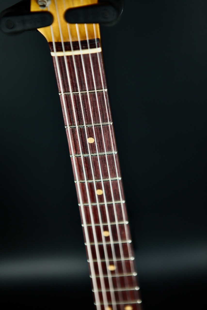 Inspired by the company’s traditional early-'60s building practices, the Fender Custom Shop ’63 is packed to the brim with golden-age Fender style. It all starts off with a lightweight alder body that’s loaded with two Custom Shop hand-wound Blackguard and Twisted pickups for a higher-output reimagining of time-tested Tele chime. On the opposite end, a rift-sawn maple neck merges the best of vintage and modern specs, including a substantial ’60s oval C shape, a gorgeous round-lam rosewood fingerboard, 21 narrow-tall frets, and a modern 9.5-inch radius. Lastly, old-school Telecaster fanatics will be sure to approve of this guitar’s period-correct ’63 threaded steel-saddle bridge and iconic slotted Fender tuning machines. A classic Fender Custom Shop nitrocellulose Relic finish rounds it all out, saving you more than a half-century’s worth of break-in time !
