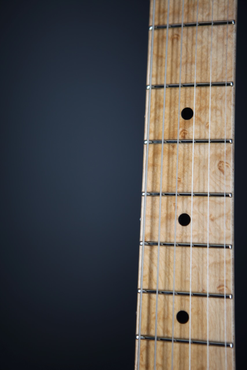 The Danny Gatton Signature Telecaster® guitar is based on Gatton's heavily customized '50s Telecaster. The cubic zirconium side markers will reflect light even on the darkest stages; other features include a swamp ash body, specially shaped maple neck with 22 frets, dual Bill Lawrence®-designed pickups based on the original specs of Gatton's personal instrument, and a special Telecaster® bridge and saddles.