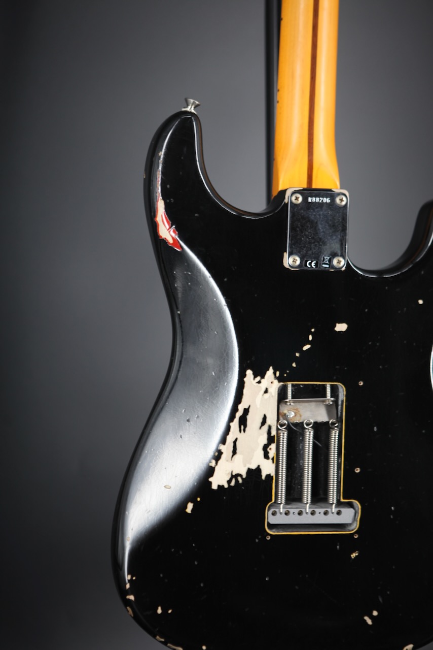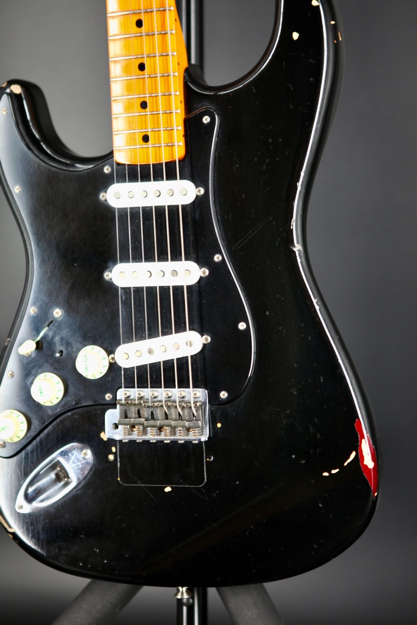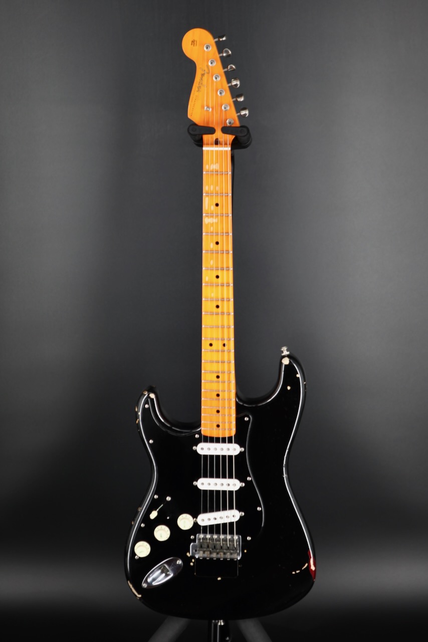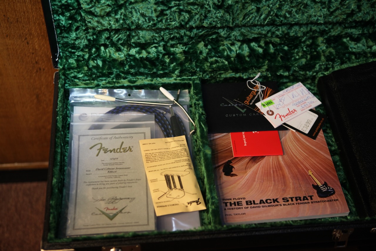 Here is your chance to get a very, very rare piece of equipment ! There more right-handed than "lefties" - and the condition of the guitar is exceptionally good, altough its a relic. The David Gilmour Signature Series Stratocaster Guitar from the Fender Custom Shop has an alder body, black or black over three-color sunburst finish, a black pickguard, a one-piece straight-grain maple neck, custom pickups, and Gilmour's now-famous electronics and shortened vintage tremolo arm.