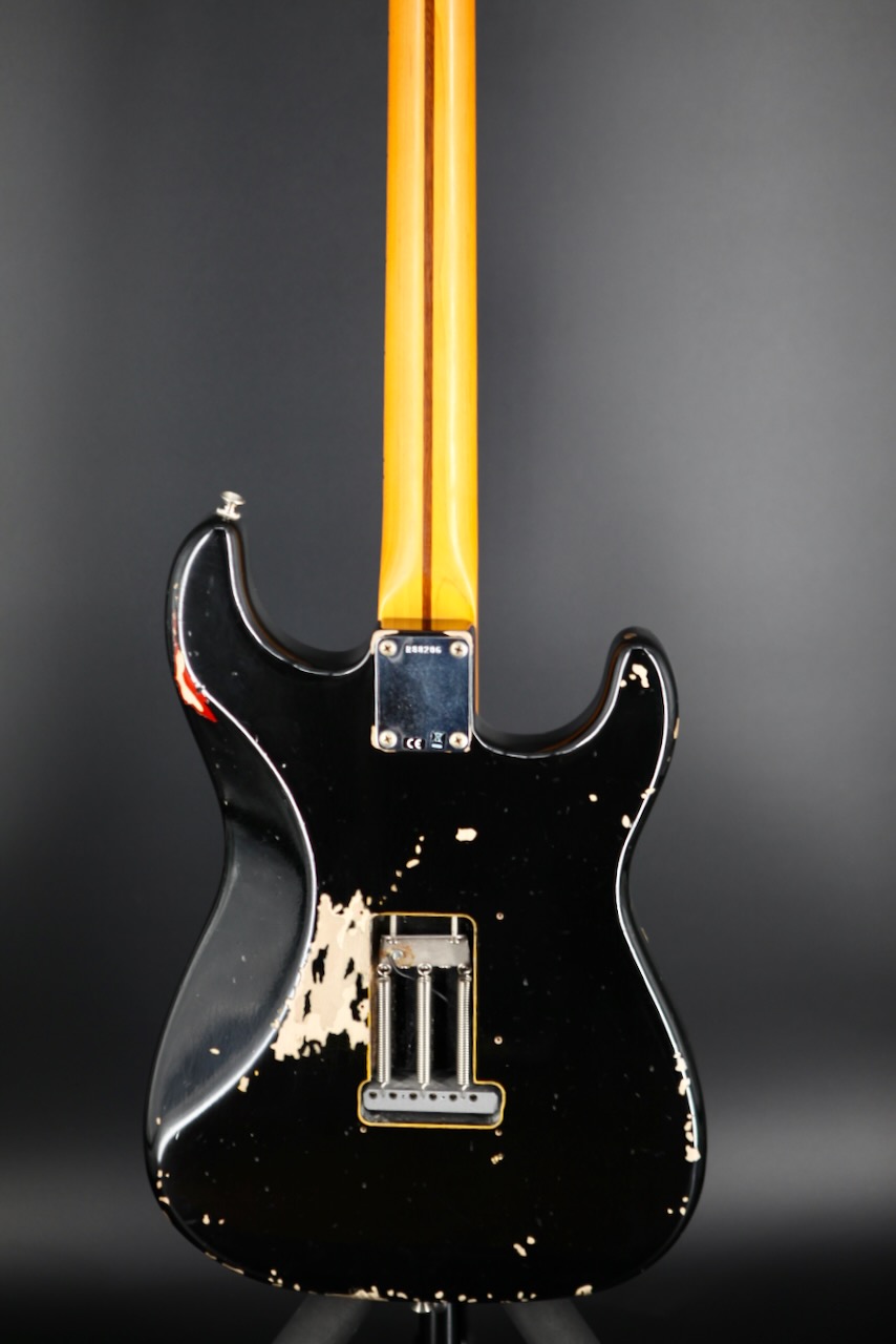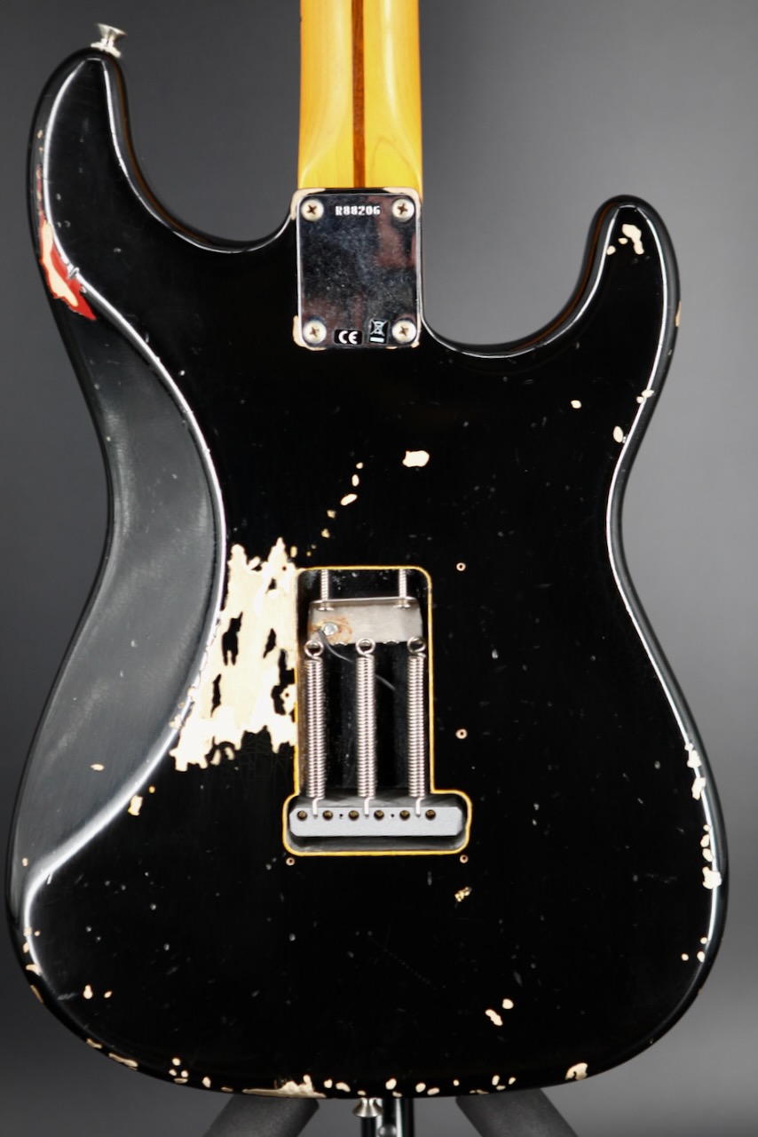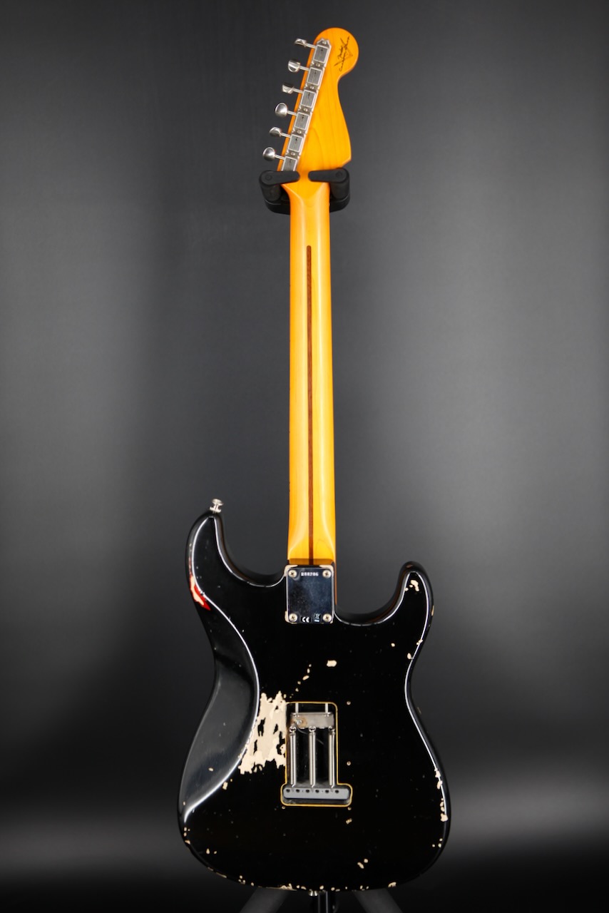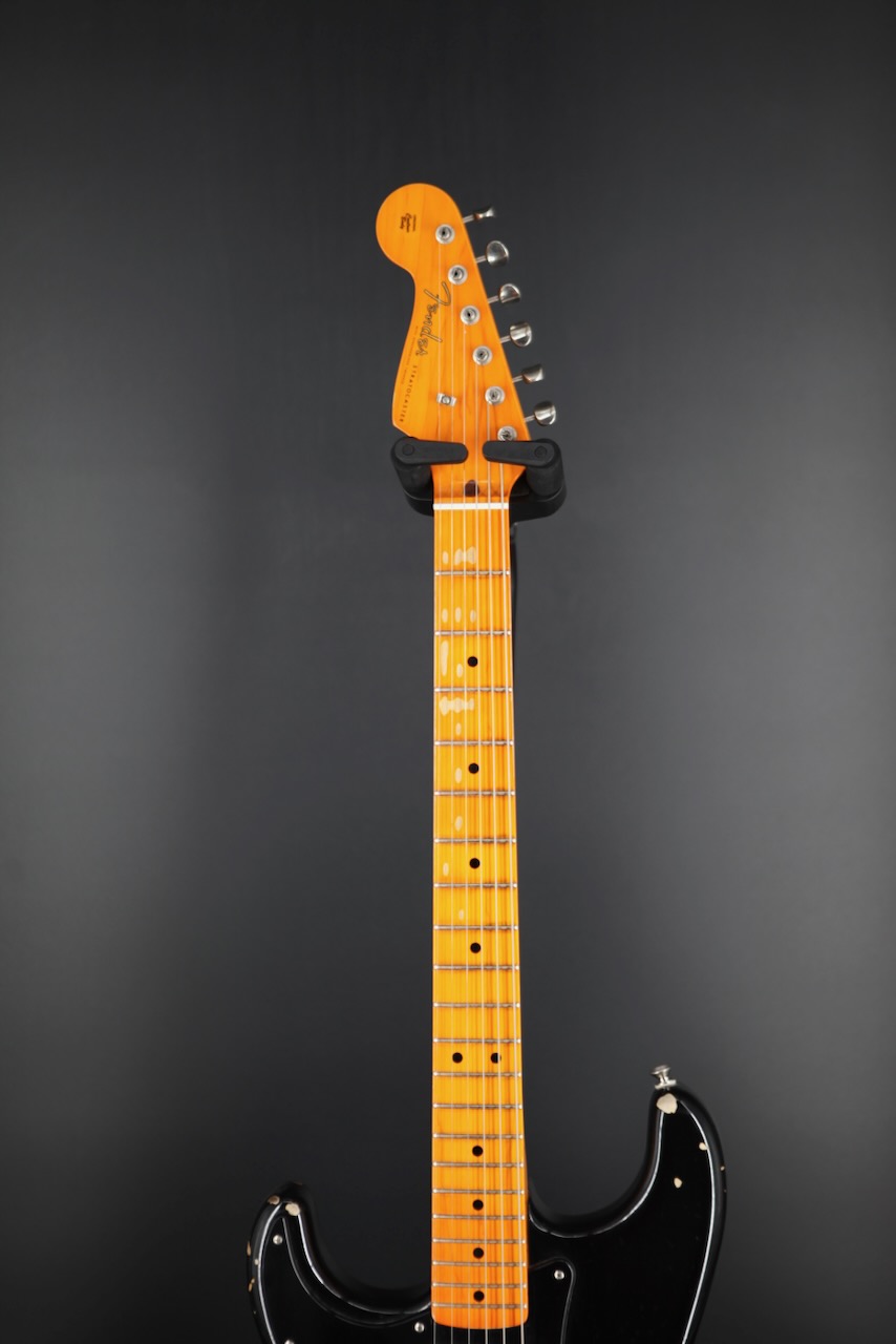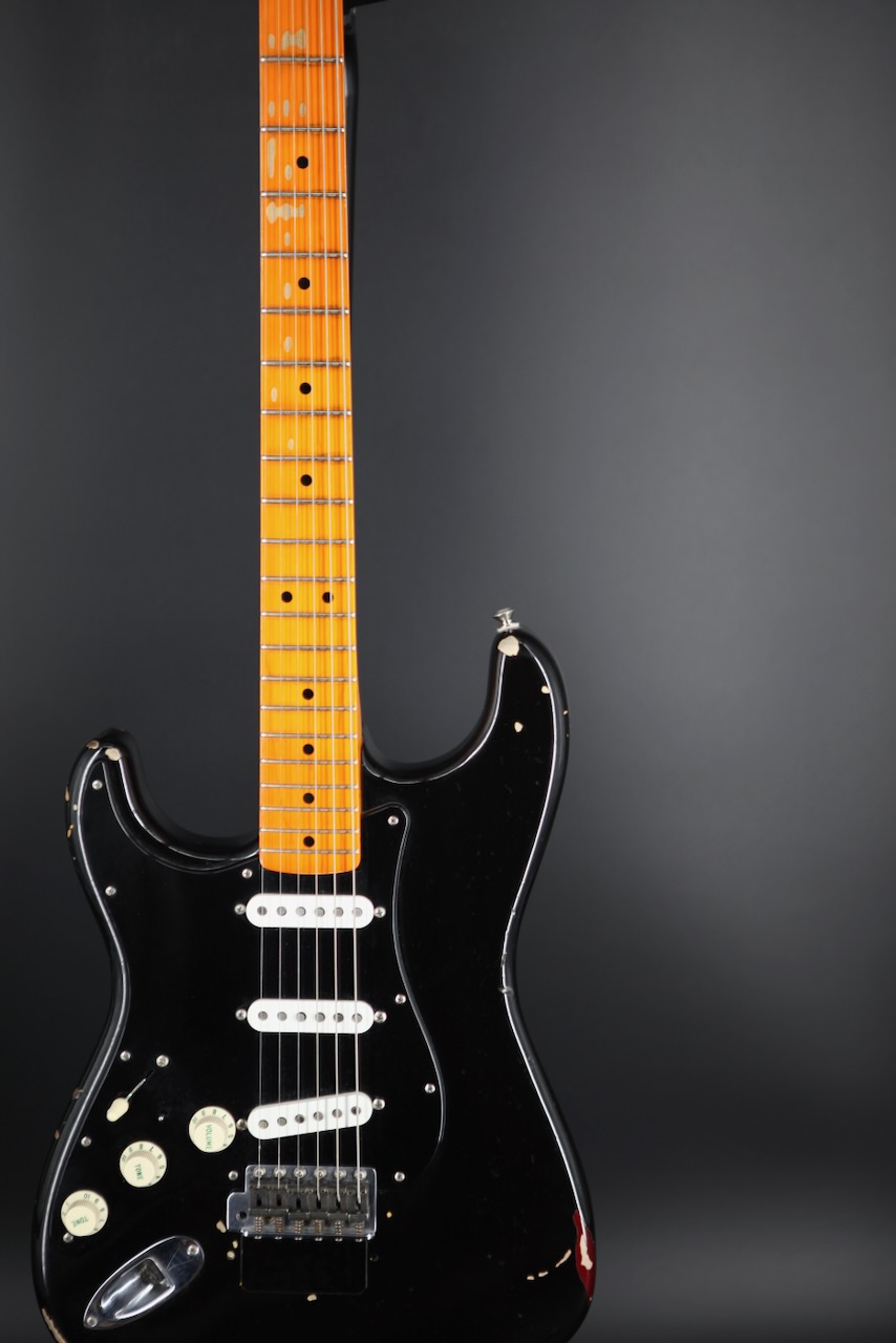 Here is your chance to get a very, very rare piece of equipment ! There more right-handed than "lefties" - and the condition of the guitar is exceptionally good, altough its a relic. The David Gilmour Signature Series Stratocaster Guitar from the Fender Custom Shop has an alder body, black or black over three-color sunburst finish, a black pickguard, a one-piece straight-grain maple neck, custom pickups, and Gilmour's now-famous electronics and shortened vintage tremolo arm.