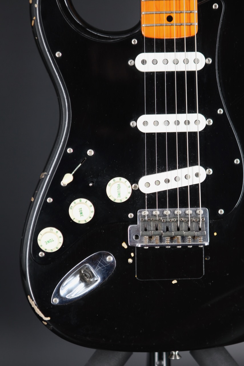 A cornerstone of Pink Floyd's incomparably revolutionary sound, Gilmour's Black Strat is featured extensively on The Dark Side of the Moon, Wish You Were Here, Animals, The Wall and his critically acclaimed 2006 solo effort, On An Island. The Fender Custom Shop worked hand-in-hand with Gilmour and his longtime guitar technician, Phil Taylor, to create this signature model instrument, a detailed reproduction of the Black Strat-complete in its unmistakable look, sound, and feel.