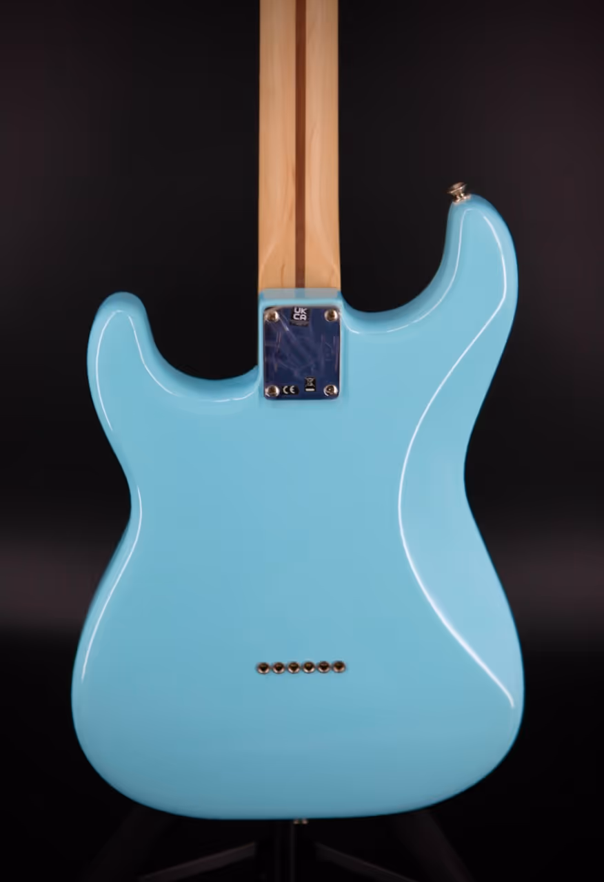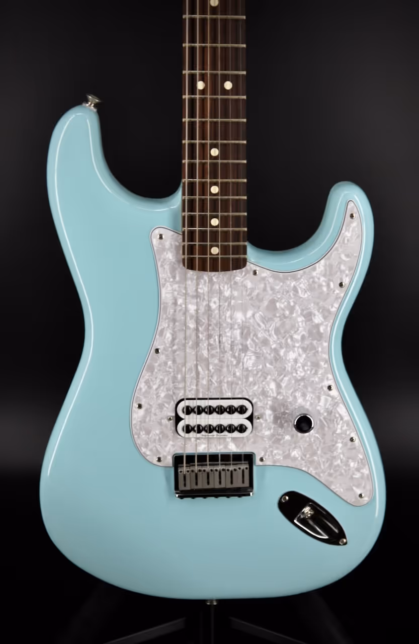 The Tom Delonge Strat is back! Teaming up with Fender once again, the influential Blink-182 guitarist's iconic Stratocaster has been reissued as part of a limited edition run — just in time for Blink's reunion tour and the much-anticipated release of their latest album. All of the essential features from the original early '00s model remain intact, including a hardtail bridge with block saddles and a powerful Seymour Duncan Invader humbucker optimised for chunky power chords and crunchy riffs. There's also the famously streamlined control setup that consists of a single master volume combined with a treble bleed circuit, which is designed to preserve the guitar's natural high-end when rolling the volume off. Other noteworthy appointments include a comfy modern "C" neck featuring medium jumbo frets and a 9.5"-radius Rosewood fingerboard, as well as sturdy vintage-style tuners and even a custom-crafted neck plate decorated with Delonge's original artwork. Whether you're a Blink-182 fan looking to bottle the band's signature sound, or a guitarist simply seeking a unique instrument that packs a knockout punch — the Tom DeLonge Stratocaster is a must-have addition for any collection! Key Features Alder Body — Known for providing balanced tone and exceptional clarity. Modern "C" Maple Neck — A supremely comfortable and rounded profile that works well with almost any playing style. Rosewood Fingerboard with Medium Jumbo Frets — The slab Rosewood fingerboard adds warmth into the sonic mix, while the medium jumbo frets and 9.5" radius offer a contemporary feel. Seymour Duncan Invader Humbucker — Delivers immense output for modern, turbo-charged punk tones! Master Volume with Treble Bleed Circuit — For maximum tone and minimal fuss, Tom's streamlined Strat comes equipped with one master volume control. With the volume backed off, the treble bleed circuit preserves your natural high-end for those sparkly cleans and crunchy edge-of-breakup tones. Hardtail Bridge — Solid, string-through-body bridge with big block saddles yields fantastic sustain and resonance.
