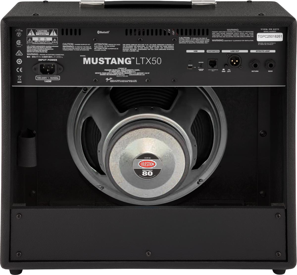 Mustang® LTX 50 is ideal for practice or performance with a 12" Celestion® G12P-80 speaker and an optional gig-ready 5-button footswitch. Onboard Bluetooth® allows you to jam along with your favorite songs as well as create, edit, download and share presets using the Fender TONE® app.