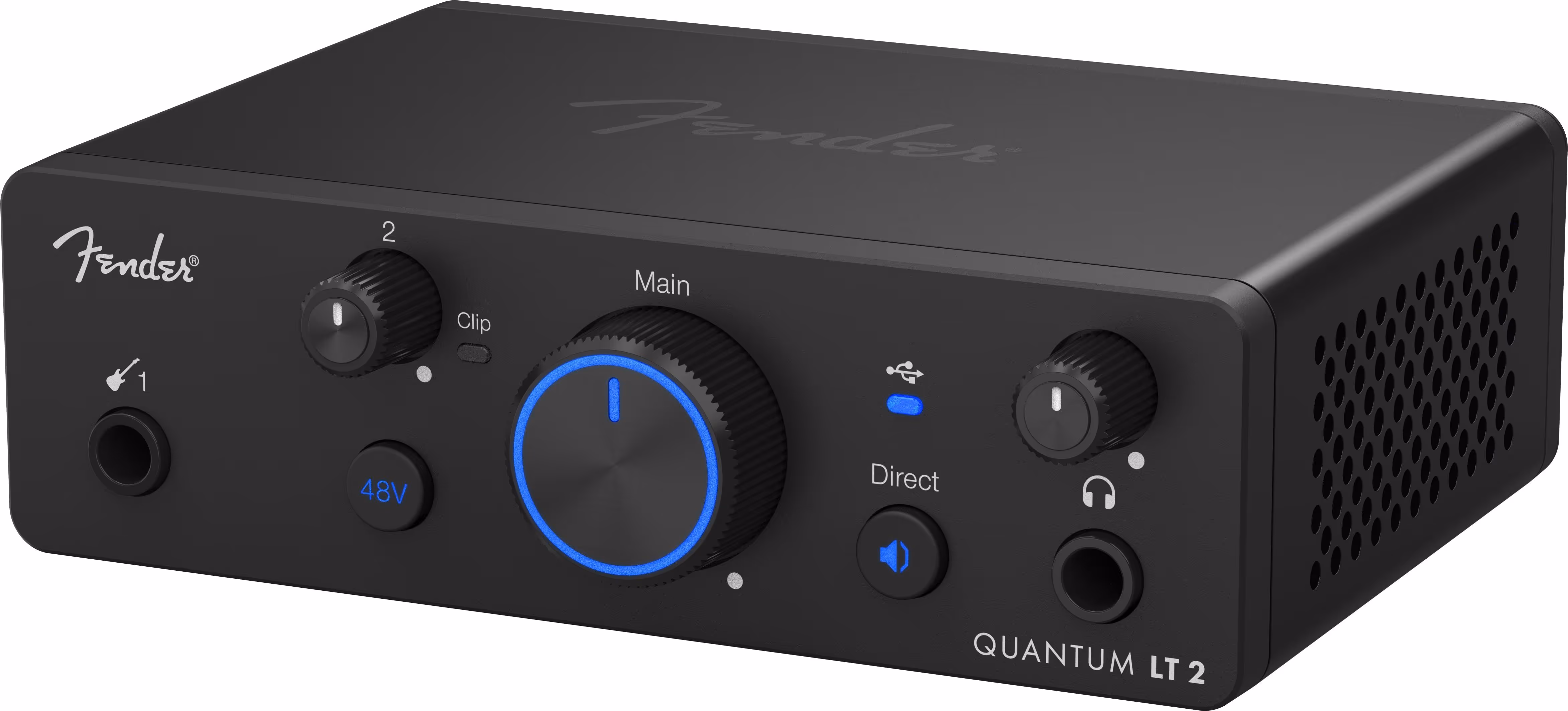 At the heart of the bundle is the Fender Quantum LT 2 interface, giving you high-quality audio conversion and low-noise inputs in a compact, desktop-friendly unit. The MAX-HD mic preamp provides plenty of clean gain for detailed vocal and instrument recordings, while the dedicated instrument input is voiced specifically for guitar and bass. With straightforward controls and flexible connectivity, it is easy to plug in, set your levels and start capturing ideas without getting lost in menus or complex routing.