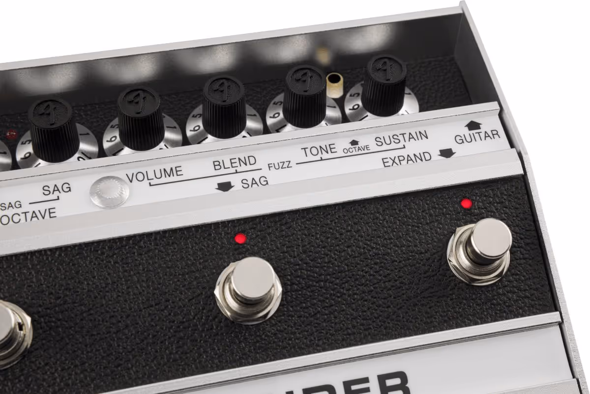 The Blender is built upon Shields’ vintage circuit from his personal, original fuzz pedal, that has been carefully hand traced. Fender have developed innovative and new ways to be able to control the blending of the fuzz voicing with four easy to use footswitches.