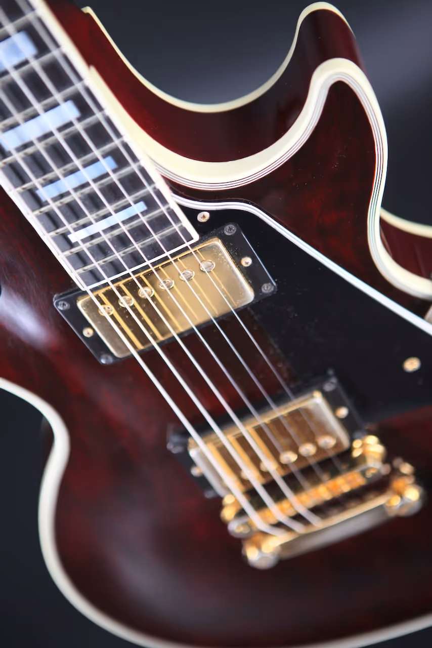 Original 490R/498T pickups. Medium neck from that time period, more on the 60's side but not quite as thin as a modern 60's neck.