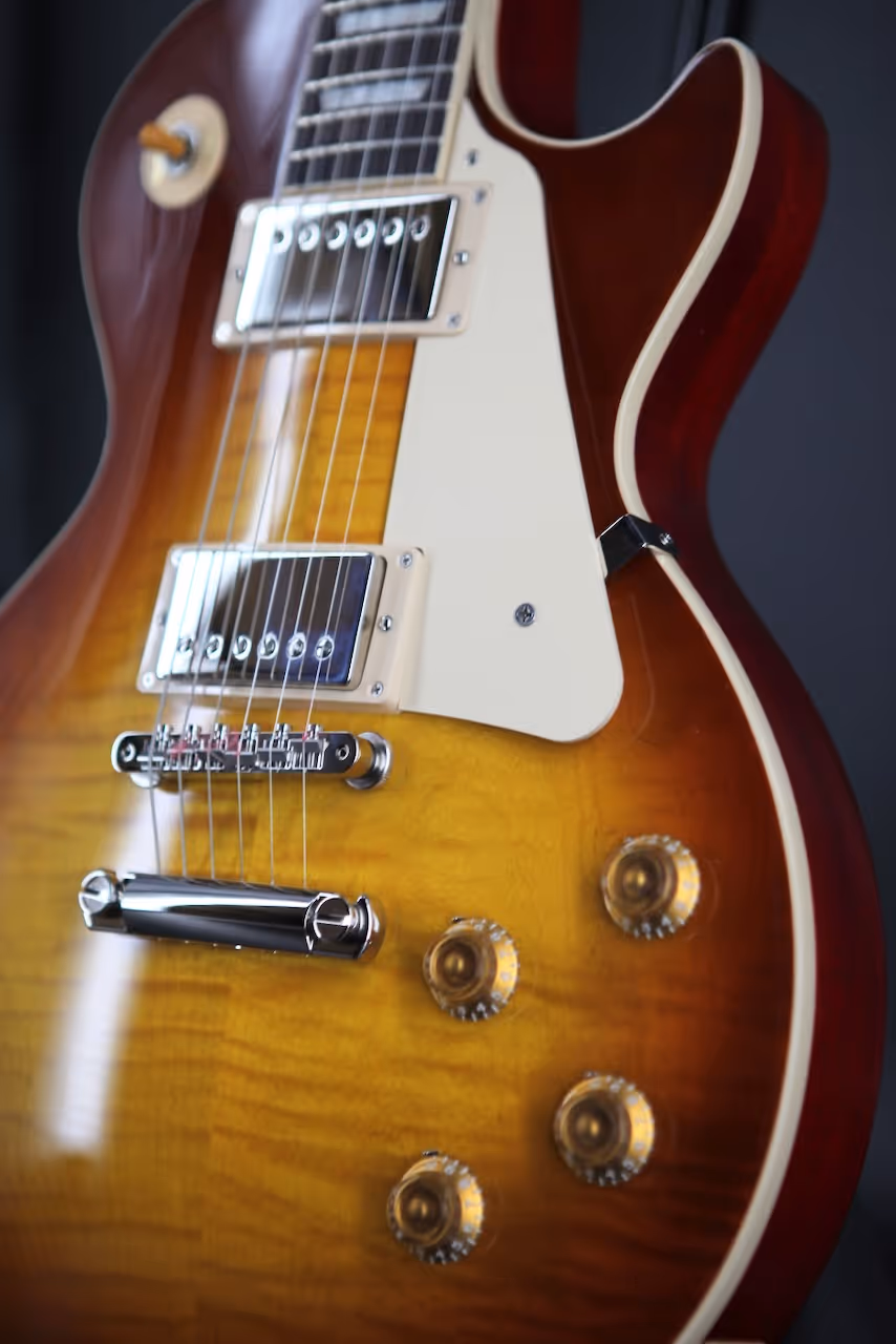 When it comes to capturing that vintage ’50s Patent Applied For (PAF) humbucker tone, nothing beats the sound of this Les Paul Standard’s ’57 Classic pickups. Alnico II magnets capture the subtle variations in true humbucker tone, thanks to the period-correct unmatched windings on the bobbins. Plug into your favorite amp, and experience smooth low-end response, complex midrange crunch, and sweet-sounding highs. These pickups sound great clean or they can be used to push your amp into overdrive for the legendary fat, snarling tone you can only get with a humbucker. Under the hood, the control assembly is handwired with matched potentiometers and Orange Drop capacitors, ensuring you’ll hear the mellifluous voice of your Les Paul Standard ’50s in all its glory, even when you back down your volume.