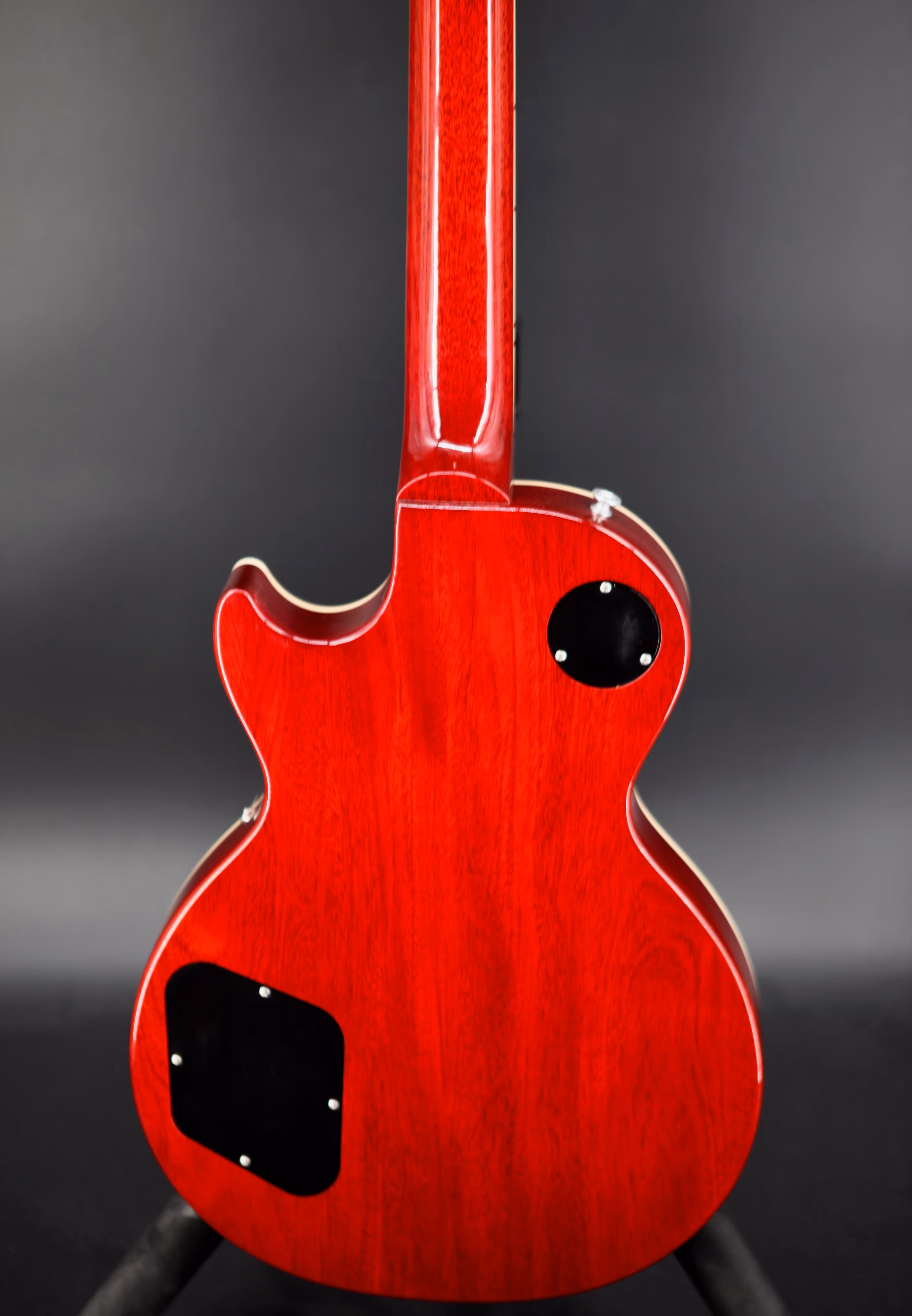 This guitar pays tribute to Gibson's Golden Era of innovation and brings authenticity back to life. The Les Paul Standard 60's has a solid mahogany body with an AA figured flame maple top, and a slim taper 60's-style mahogany neck with a rosewood fingerboard and trapezoid inlays. It's equipped with a classic-style Tune-O-Matic bridge, aluminium stop bar tailpiece, Grover Rotomatic "Kidney" tuners, and gold top hat knobs with silver reflectors. The Burstbucker 61R (neck) Burstbucker 61T (bridge) pickups are loaded with AlNiCo V magnets, audio taper potentiometers and orange drop capacitors.