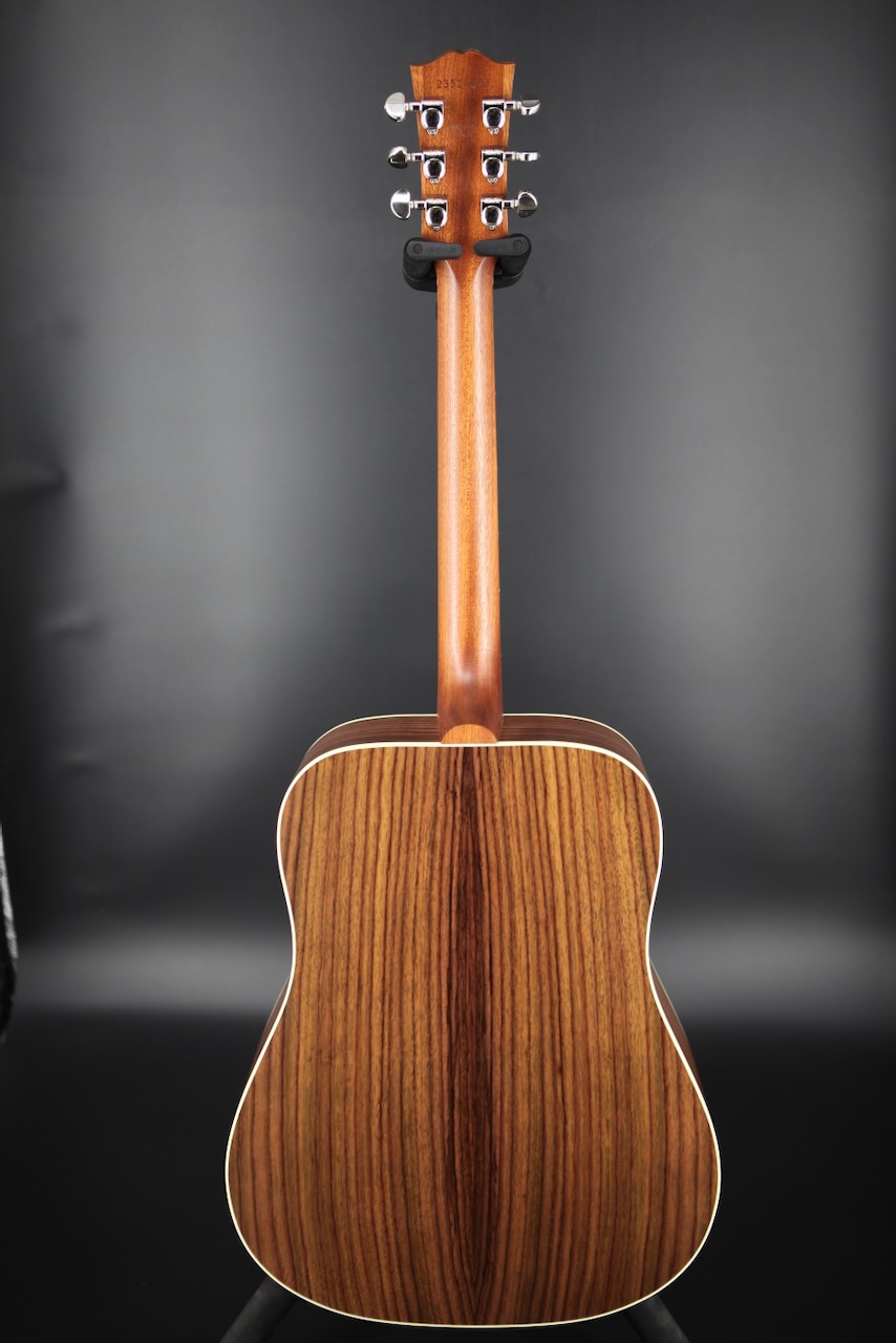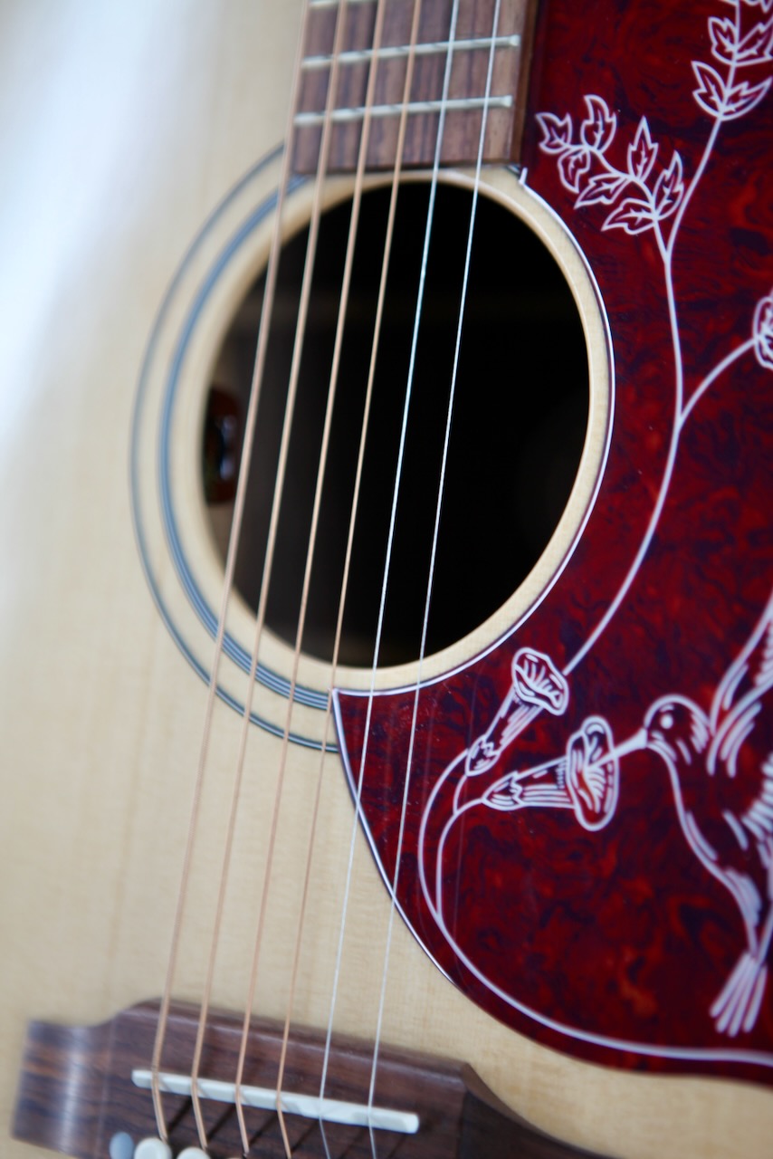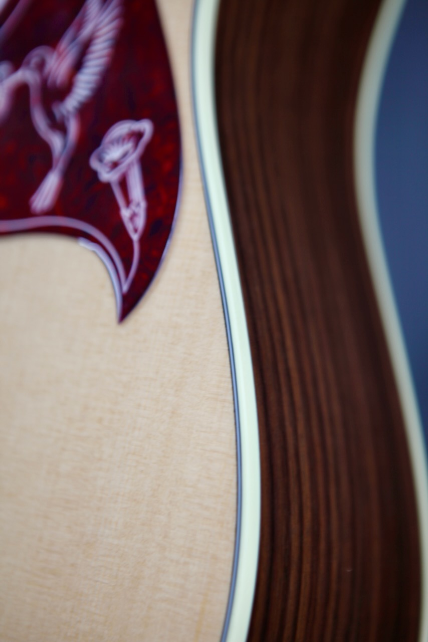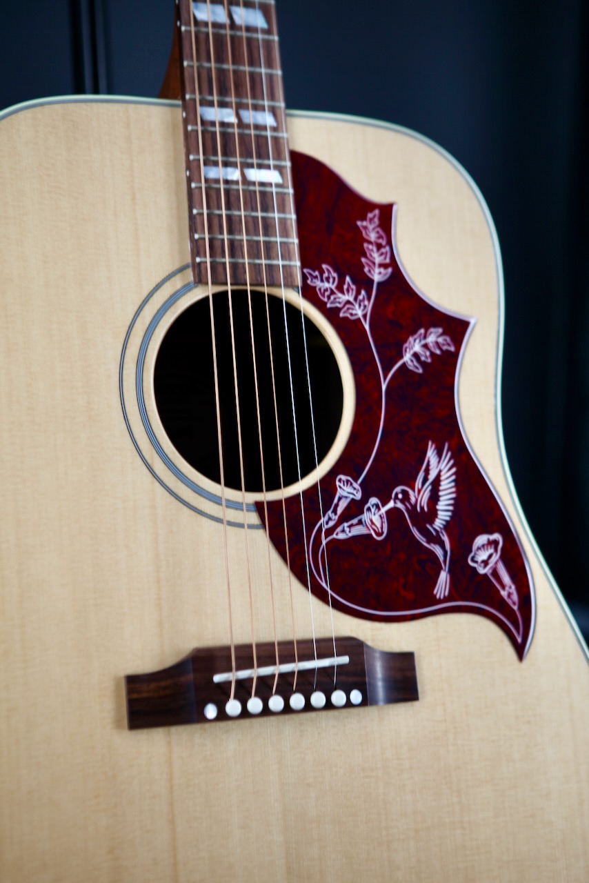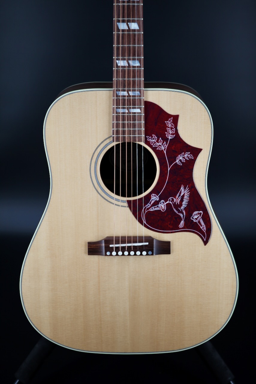 Traditionally, the Hummingbird is built with mahogany back and sides. Now, Gibson has added upgraded rosewood back and sides to the original Hummingbird design. The Hummingbird Studio Rosewood consists of solid rosewood back and sides with a solid Sitka spruce top. Together, those tonewoods produce a deep, resonant bass response with sparkling trebles. Plus, the harder you lay into it with a flat pick, the Sitka spruce top will respond in kind, providing heavyweight punching power for all occasions.