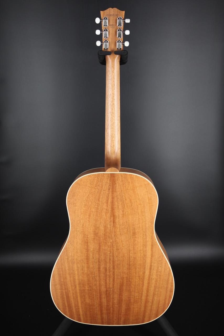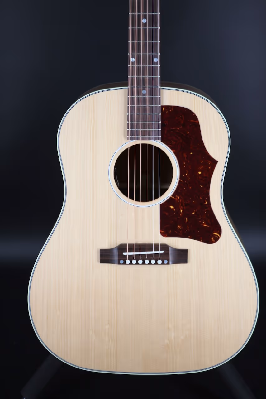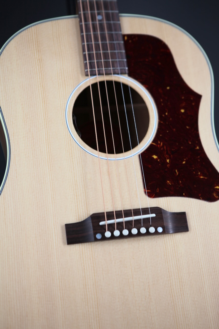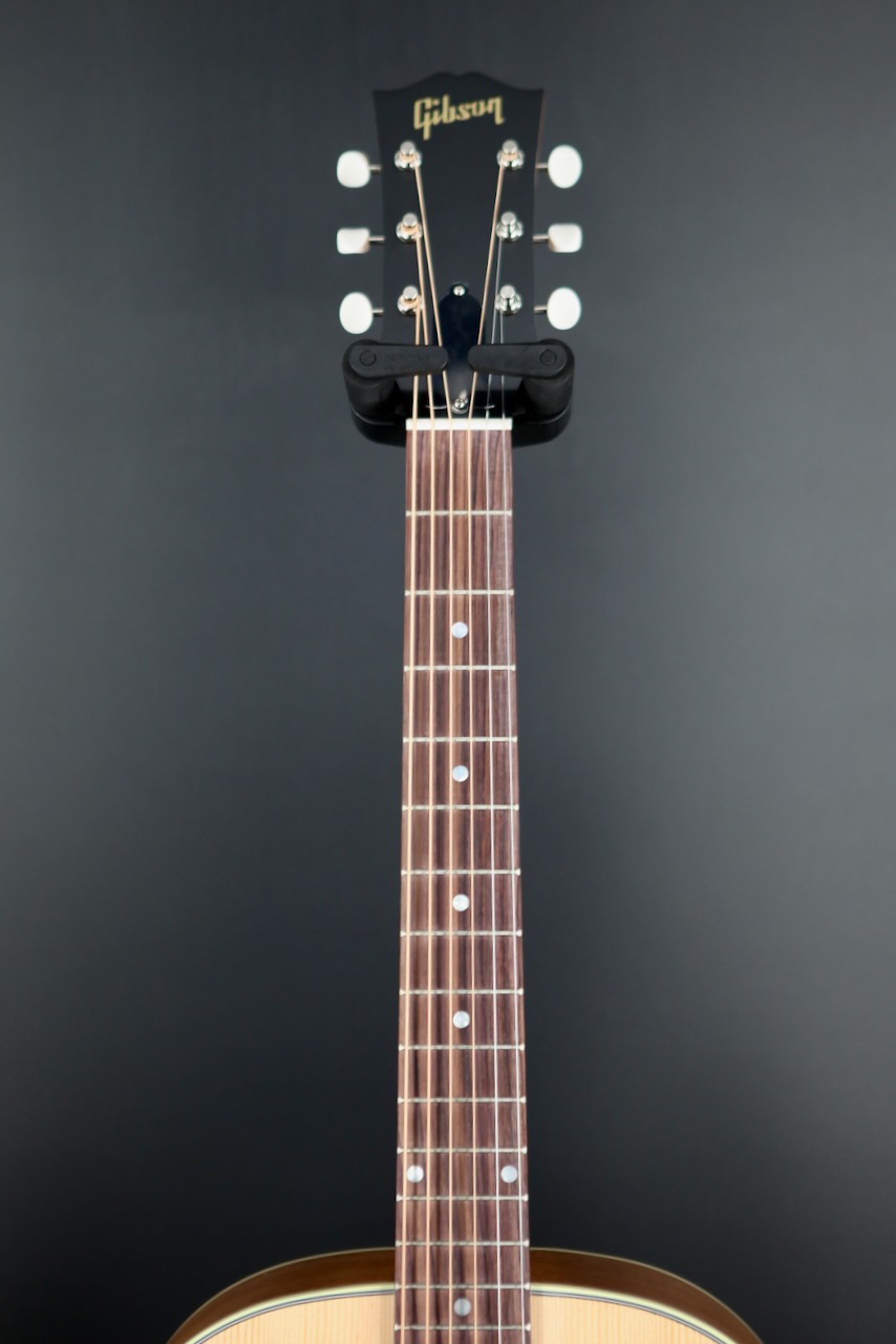 The instruments in Gibson Acoustic’s Studio series have historically featured three distinct qualities that differentiate them from their higher-end counterparts: restrained aesthetics, unique tonewoods, and a slimmed-down body depth. That all changes with this J-45 Studio Rosewood! Now boasting a full-depth body, this model clocks in even closer to high-end J-45 specs. Moreover, Gibson graced this Studio series model with a full gloss nitrocellulose lacquer top — the same finish found on Gibson’s top-of-the-line models — to pair with the understated appeal of its satin back, sides, and neck.