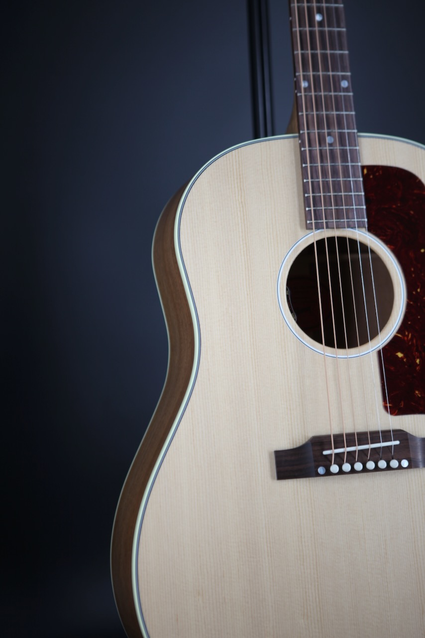 Now sporting a gleaming gloss nitrocellulose lacquer finish on the top, this J-45 Studio Rosewood’s refined appointments climb even closer to high-end J-45 specs. Bearing sought-after features of previous models, the J-45 Studio Rosewood has taken a detailed approach to historical build practices, including a deeper body depth and vintage hardware appointments that harken back to tones of years past. An enhanced utile neck with a slick satin finish gives players enhanced maneuverability around the J-45 Studio Rosewood’s thumping tone, conjured by a Gibson-standard rosewood and spruce tonewood cocktail. Topped off with a top-shelf LR Baggs Element Bronze preamp and pickup system, this J-45 is fit for use in the hands of the most discerning players, onstage and in the studio.