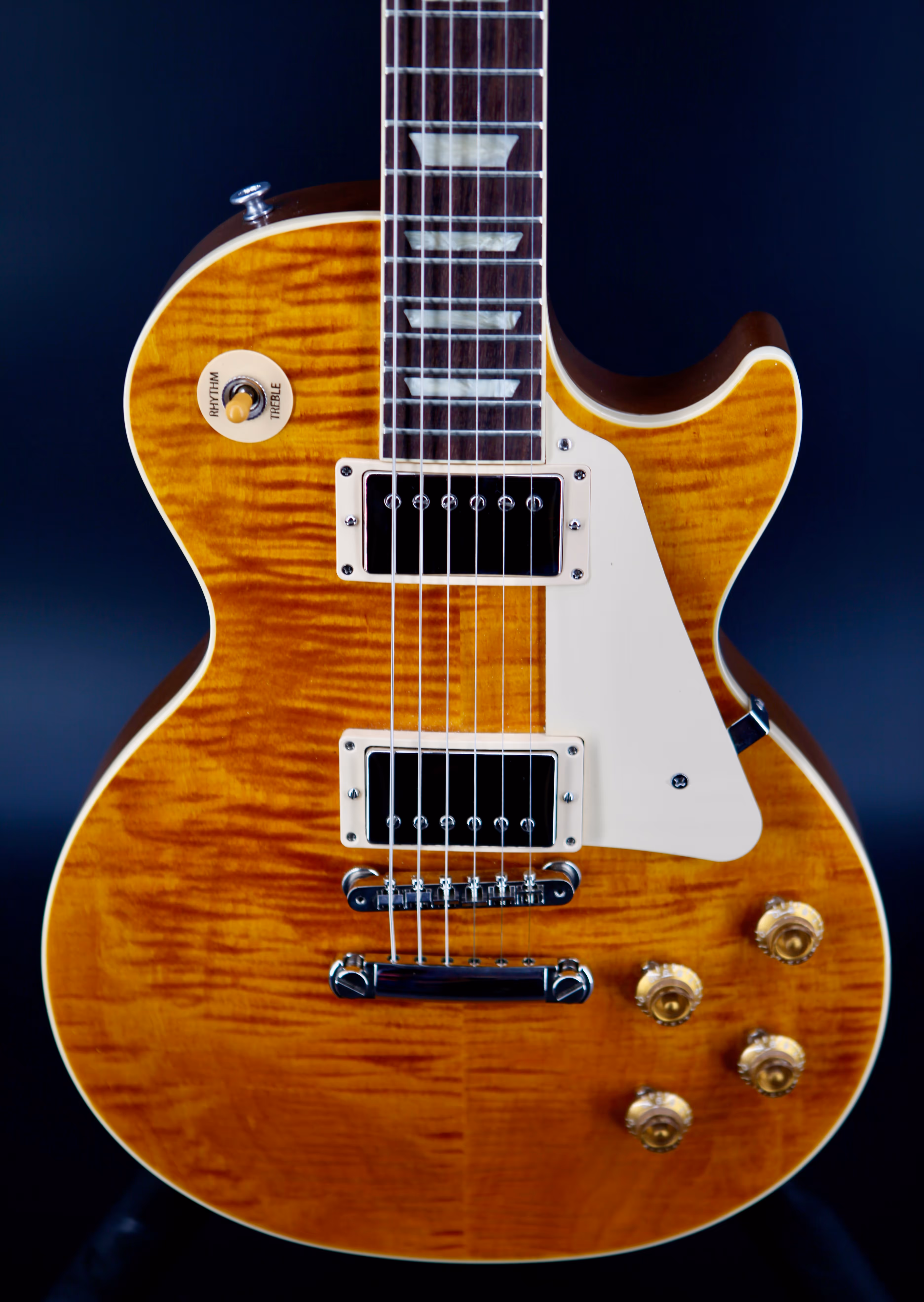 The Burstbucker Humbuckers on the ‘50s standard have a warmer output featuring Alnico II magnets producing that classic PAF-style sound. Rich and warm in tone, these pickups give you a beefy low-end and clear mid-range, whilst being able to handle clarity in overdriven gain when turned up to the max.