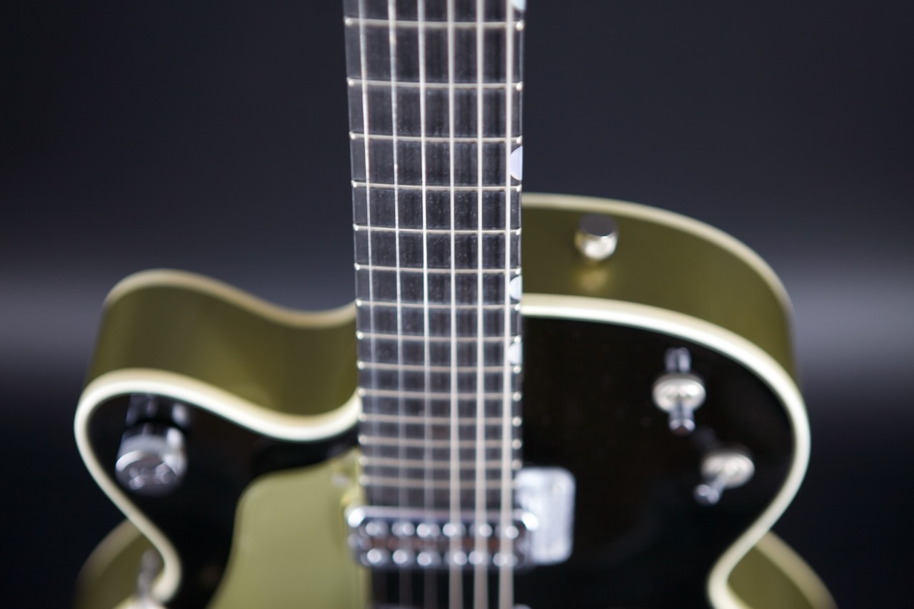 The Gretsch G6118T-LTV 130th Anniversary Jr features a real bone nut, which maintains its authentic appearance. The main purpose of using a real bone nut compared to modern materials is bone offers excellent resonance and sustain. A bone nut also delivers a very balanced tone, and will last a long time. In addition, this type of nut naturally self lubricates and helps you stay in tune for longer.