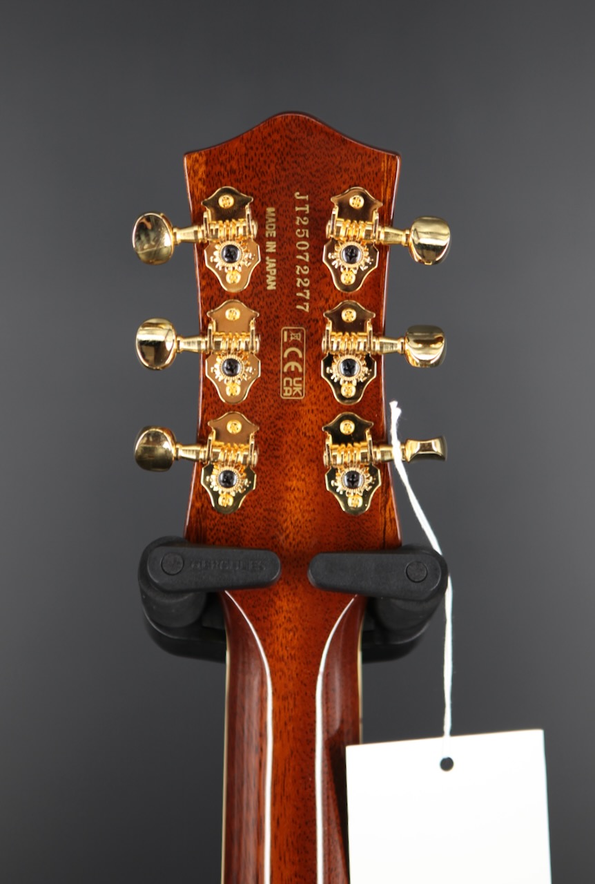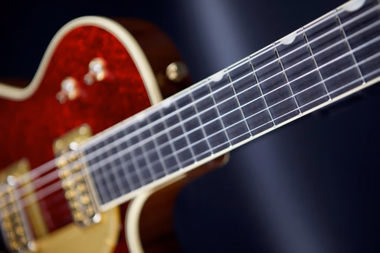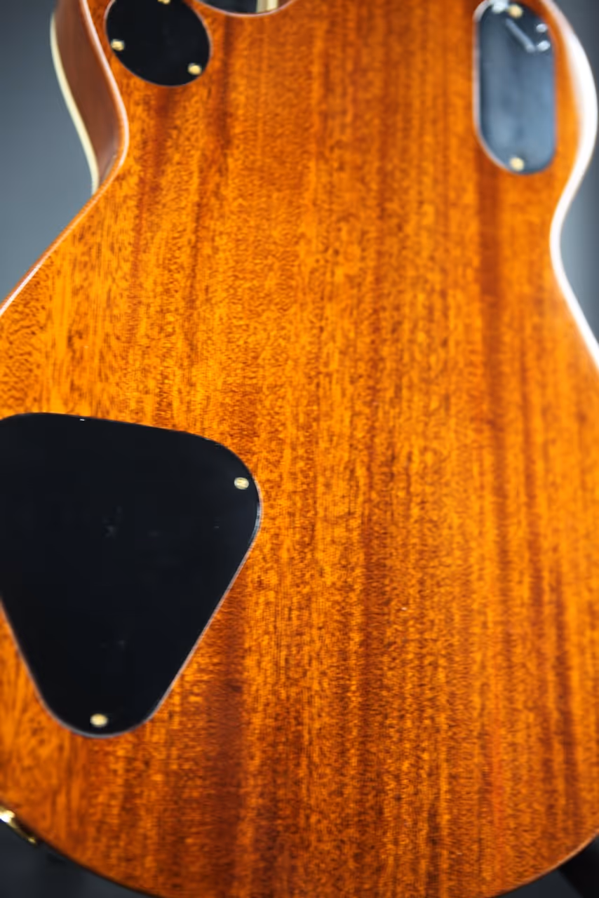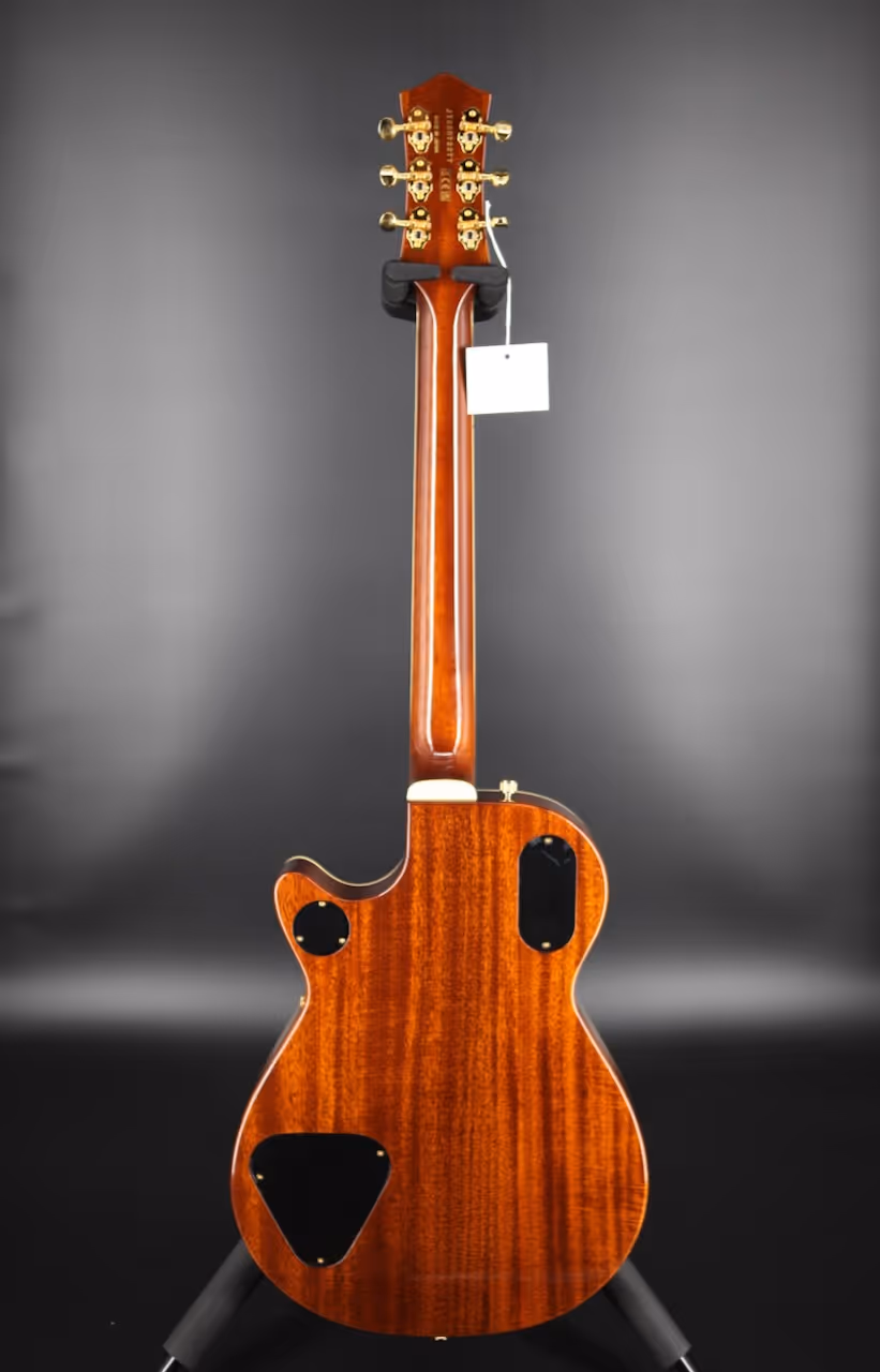 The chambered mahogany body enhances resonance and sustain by allowing air to move freely within the guitar, creating a lively and articulate tone. The arched maple top adds brightness and definition, resulting in a well-balanced sound that cuts through any mix.
