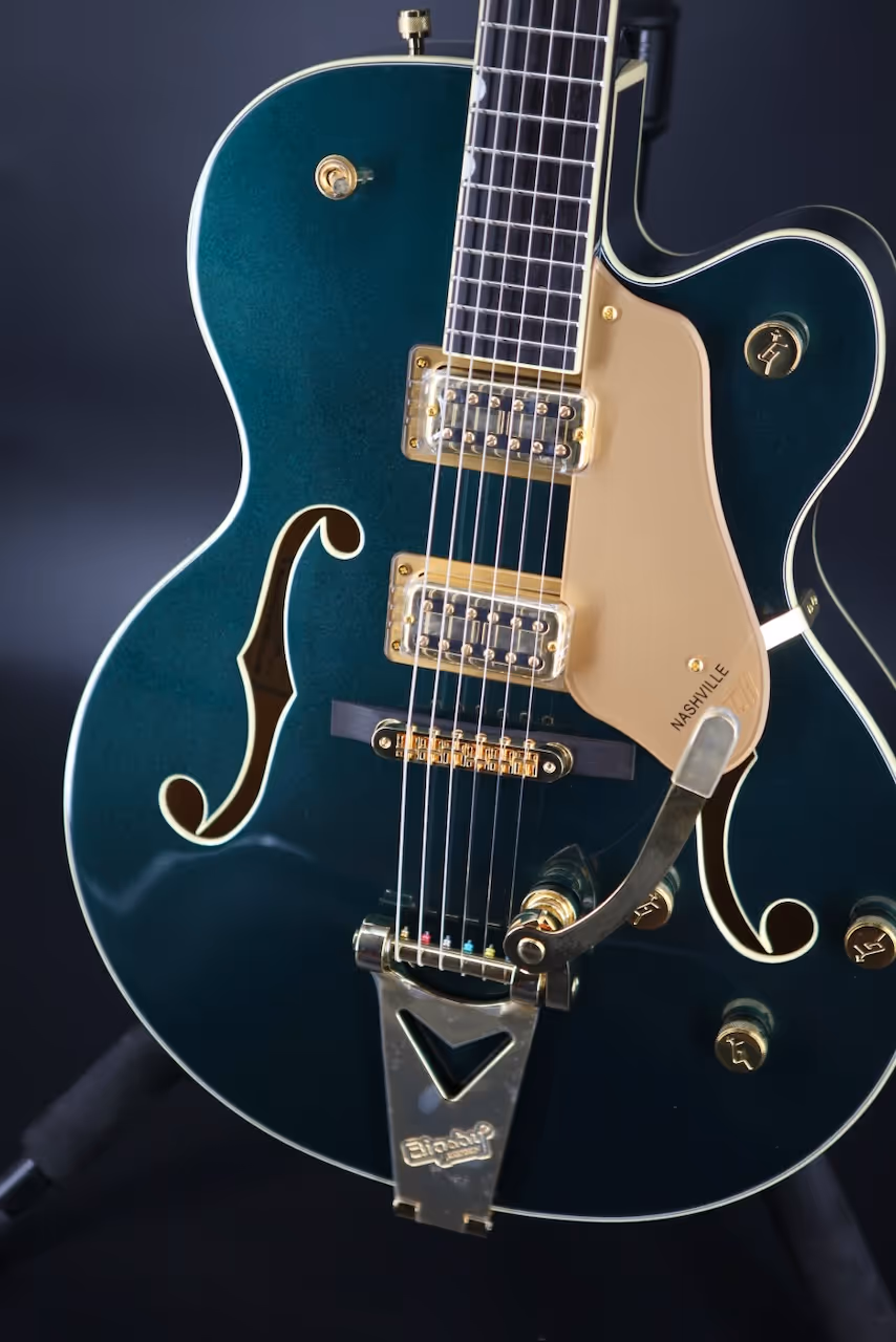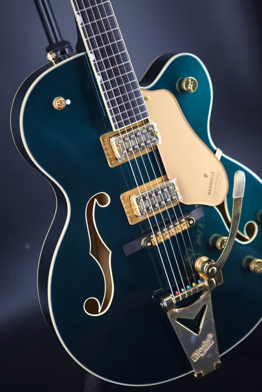 The Synchromatic™ Nashville® brings the spirit of the classic Gretsch® 6120 hollow body into a whole new realm. Featuring a 2.5” deep maple body with Semi-Arc bracing design, an ebony fingerboard, and Hi-Fidelity Filter’Tron™ pickups, the Synchromatic Nashville provides the comfort, playability, and timeless Gretsch® sound that you need to fuel your sonic creations.