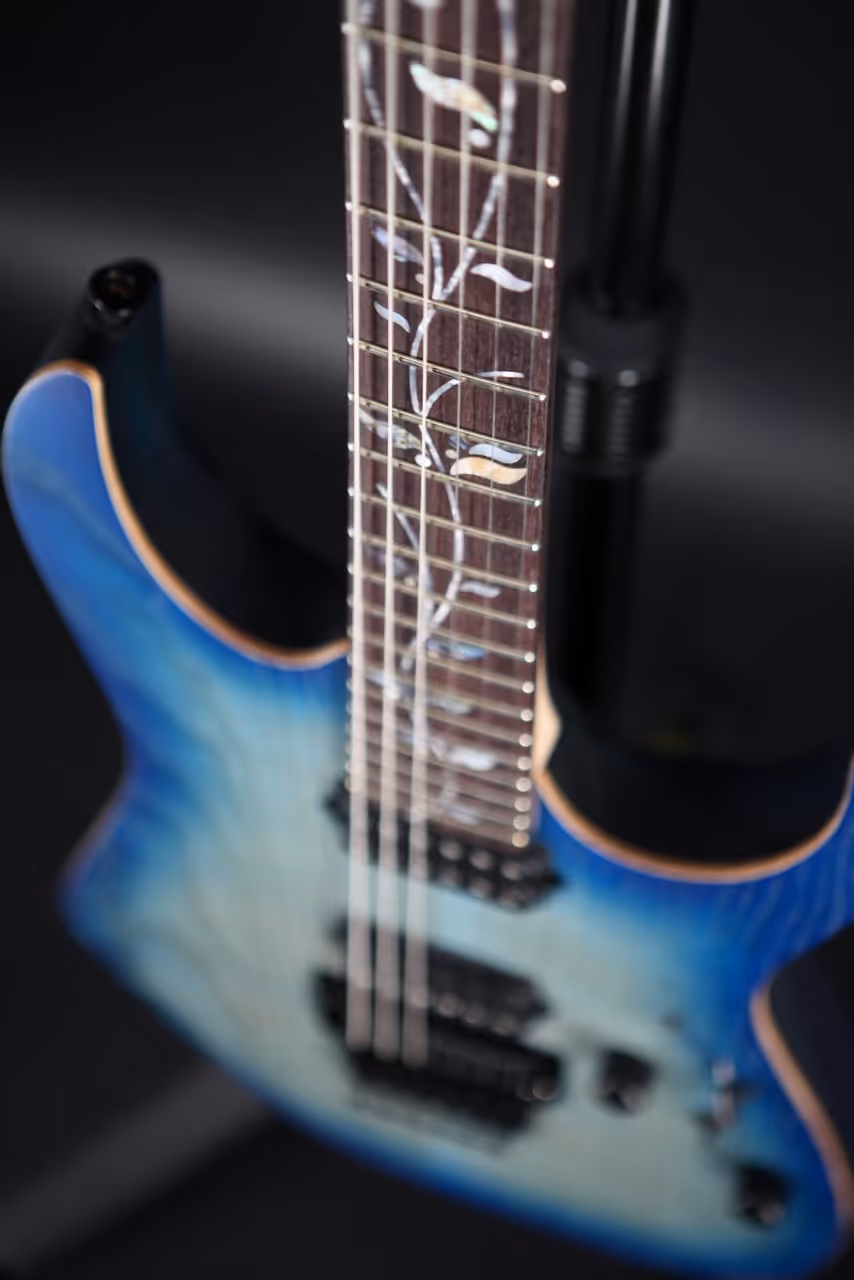 This Super Wizard AS neck has a more rounded shape towards the bass side, while still retaining the overall thickness of the Super Wizard profile– 17mm at nut and 19mm at 12th fret. This asymmetric shape provides a more comfortable grip and natural feel that makes techniques like sweeping and string skipping much easier.