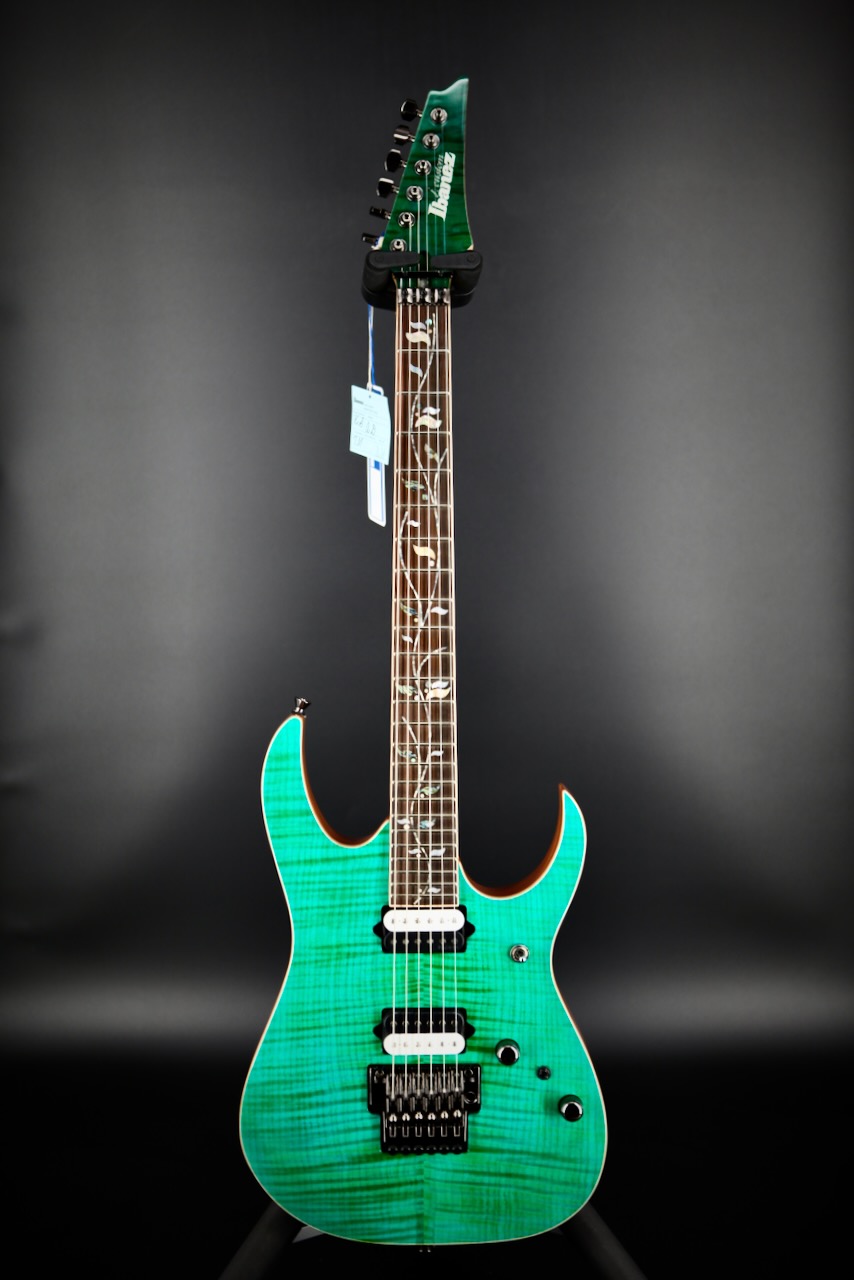 The RGA42FM is a hardtail, 6-String Electric Guitar that features a sultry Flamed Maple top with a white binding; a fast, thin Wizard III Maple neck; and a Rosewood fretboard with jumbo frets for maximum left-hand performance. Combined, the neck and fretboard provide a smooth, inviting playing surface and contribute to the RGA42’s warm, well-defined tonality. Also the directly mounted proprietary Quantum pickups offer an entire palette of thick, distorted tone textures that never sacrifice high-end articulation. A simple yet solid fixed bridge provides stable, dependable tuning and accurate intonation.