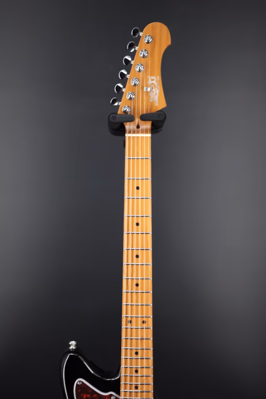 Canadian roasted maple for both neck and fretboard gives a slick, fast feel with excellent stability. The roasting process helps the wood resist shifts in temperature and humidity, so your setup stays consistent. Paired with a comfortable modern C profile and a 9.5" radius, it invites confident chording, smooth bends, and tidy vibrato work across all 22 frets