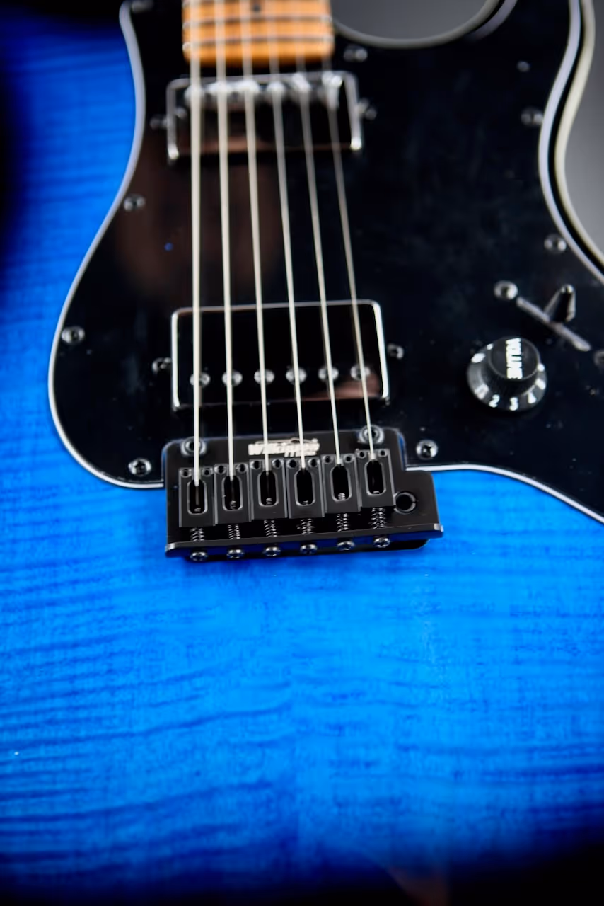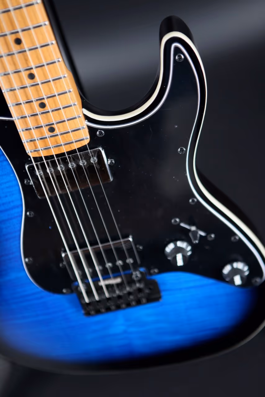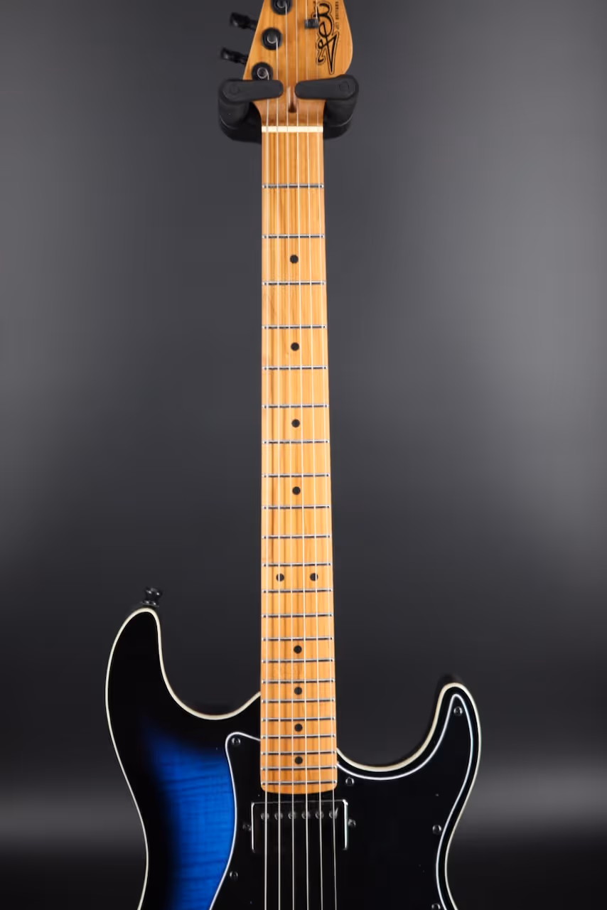 A roasted poplar body keeps the weight sensible and the resonance lively, while the Modern C profile, 9.5″ radius, and 22-fret, 25.5″ scale make chords, bends, and fast runs feel natural. Black hardware ties in with the Blue Burst finish for a stage-ready aesthetic that looks as sharp as it sounds, so you'll feel inspired every time you plug in