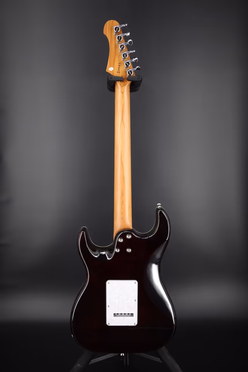 Built with a beautiful body wrap and an exposed timber headstock, this model combines shimmering chrome hardware to create vintage visual aesthetic that is sure to capture the eyes of your audience. This striking and more modern style is balanced out with the addition of the roasted maple neck and rosewood fingerboard, supplying a more natural flavour that complements the overall look of the guitar.